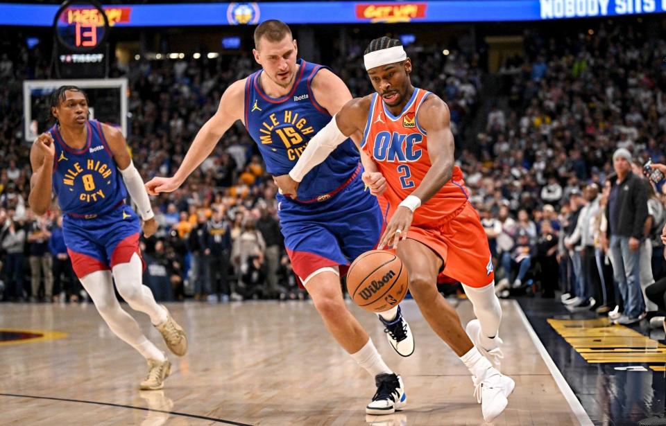易边再战,约基奇投篮得手,华莱士命中三分,亚历山大投篮得手。皮克特投篮命中后,哈滕和约基奇先后得手,华莱士再中三分。亚历山大和沃特森先后得手,约基奇和皮克特连得5分缩小到3分。霍姆格伦和约基奇先后命中三分,华莱士连续命中两记三分,亚历山大和维金斯同样连续外线命中,雷霆队拉开到15分。瓦兰丘纳斯得手后,亚历山大打成2+1,布朗命中三分,杰林-威廉姆斯三分得手,穆雷两罚全中,维金斯上篮得手,亚历山大再次两罚全中,瓦兰丘纳斯和杰伦-威廉姆斯先后得手,沃特森投篮命中后,雷霆队101-85领先掘金队结束第三节比赛。