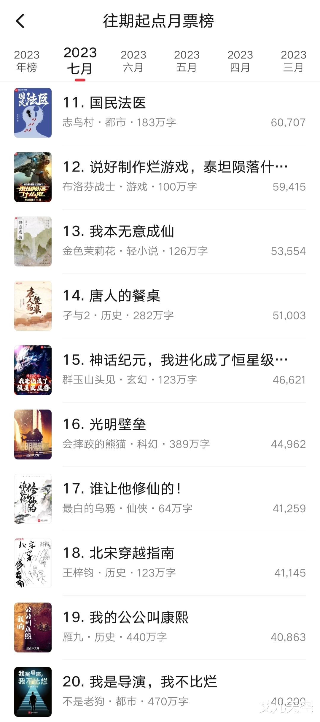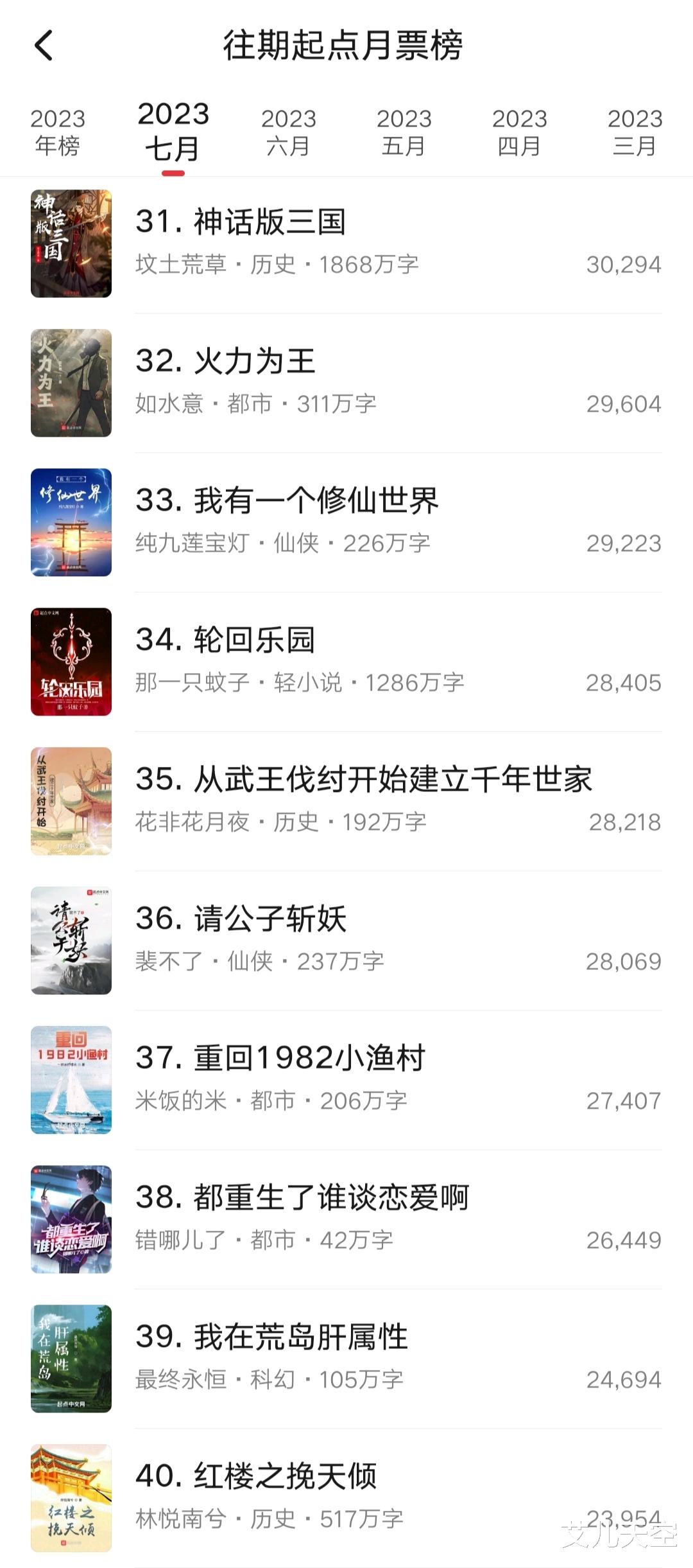 以上就是七月份起点月票榜一些作品的最终情况,不知道这个月的月票榜结果是否在你的接受范围呢?