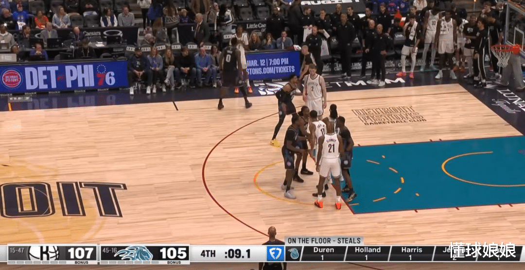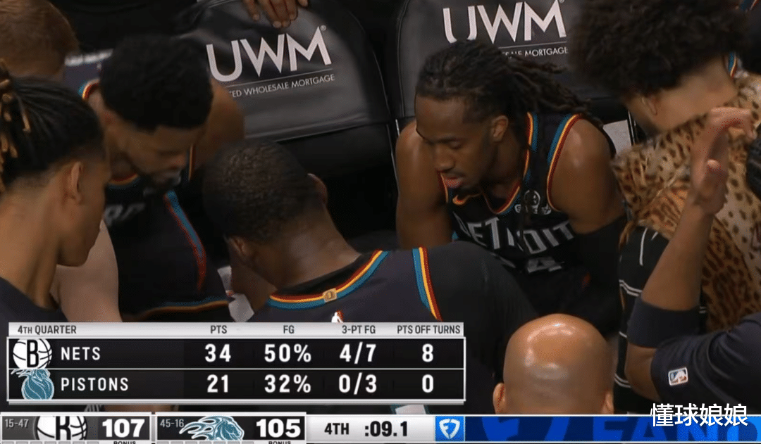 好笑的是,最后9秒的这个暂停时,现场导播的镜头一直对准活塞替补席,半点没给篮网,是不是也怕拍到点什么不好播出的镜头?
