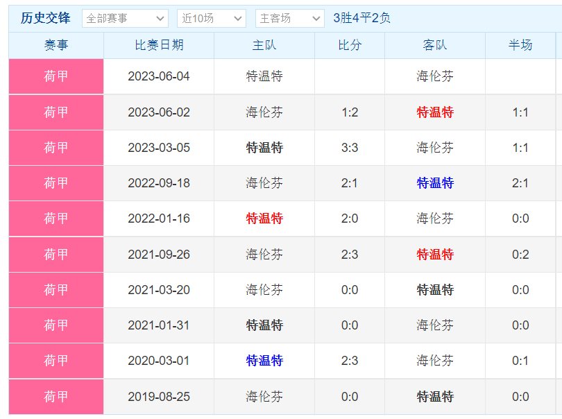 荷兰甲级联赛 特温特 VS 海伦芬