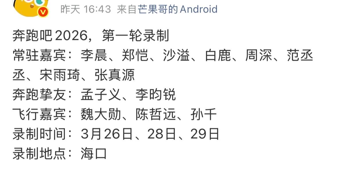 除了全员回归的常驻团,首期的“奔跑挚友”和飞行嘉宾阵容更是直接拉满。