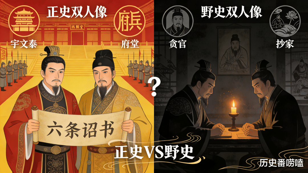 敲黑板!重点来了~ 刚才那则听得人后背发凉的野史,正史里压根没记载!这则“用贪反贪”论最早出自宋末元初文人伪托的《苏绰传》(也叫《宇文泰问对》),纯属后人编造的政治寓言,跟真实历史半毛钱关系都没有!历史上的宇文泰(507-556年)是西魏权臣、北周奠基者,苏绰(498-546年)是西魏顶级名臣,两人是并肩改革的黄金搭档,一起推行府兵制、制定“六条诏书”,把西魏治理得蒸蒸日上。