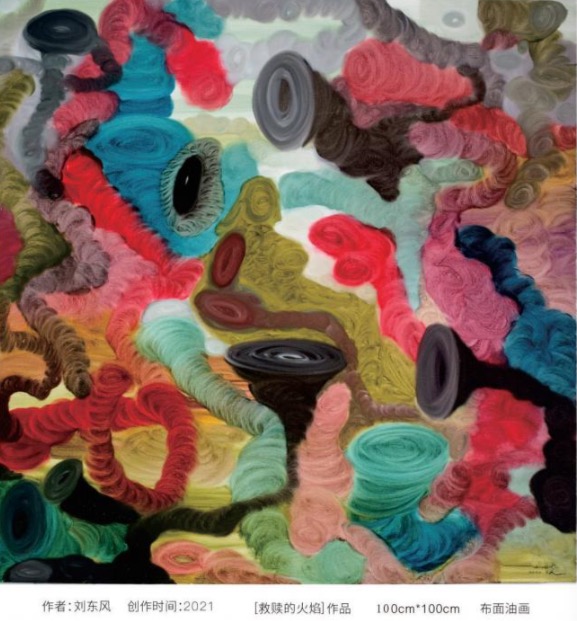 刘东风:对。然后去看一些就是比如说我们对话,我们对话的时候,我们的热量,热量波是圆形的,所以在您的作品当中经常会出现那个圆形的,就是层层叠叠的