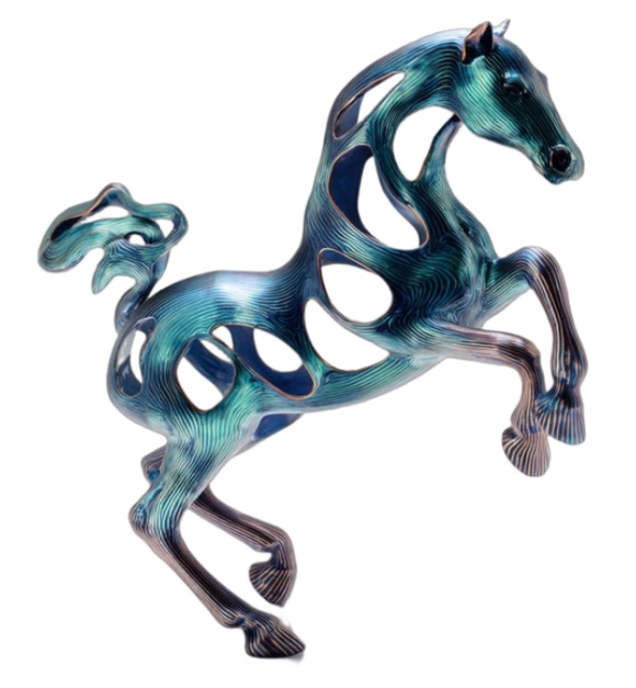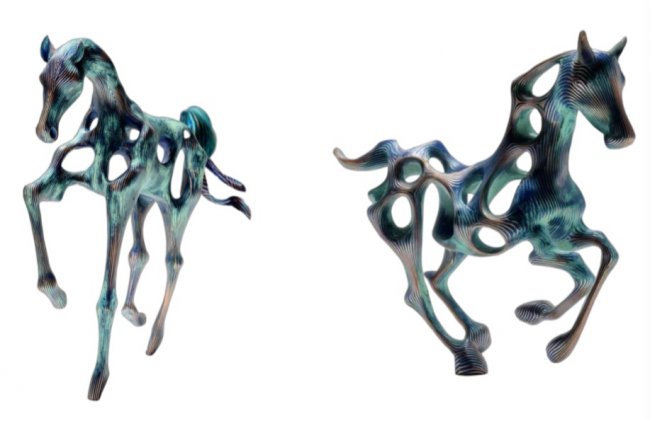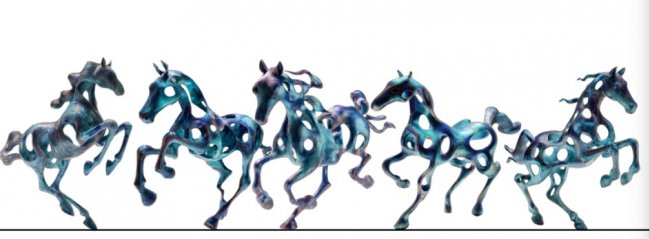 它是要不停的奔跑的, 它是提供一个叫工具类型的,欧洲的这些马,它主要提供不是要干嘛的它提供是一种是一种运动。它的体态,相对来说是非常优雅,但是这个创作完以后我又有一些心得。当时就说,如果纯抽象的话这些这些观者是看不懂的,对不对,你还要保留什么?叫像与不像之间,对不对,这个也是我自己,在思考的东西,就是所谓的当代抽象,