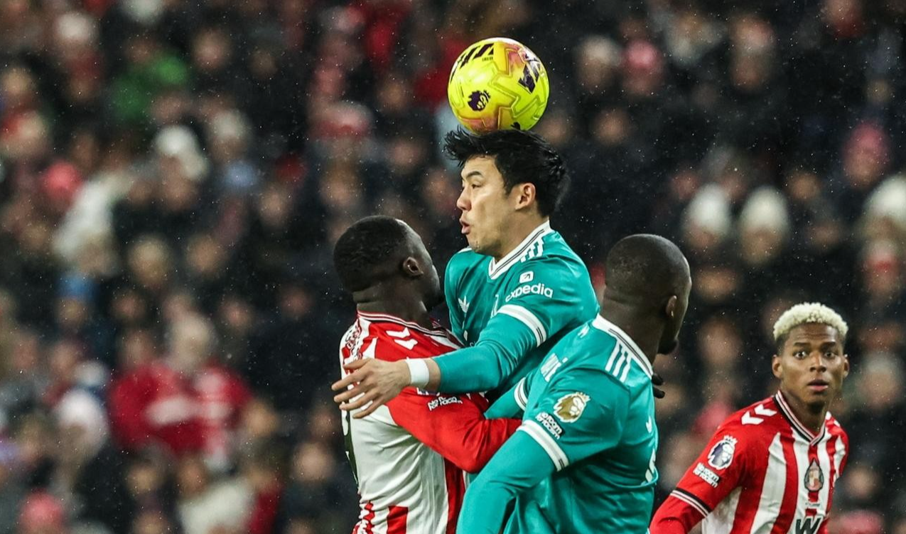 在一次及时解围破坏桑德兰进攻的过程中,远藤航的脚不慎卡在草皮里,随即痛苦倒地。他一度咬牙起身试图坚持,但回光返照般短暂,谁都看得出他今晚撑不下去了。