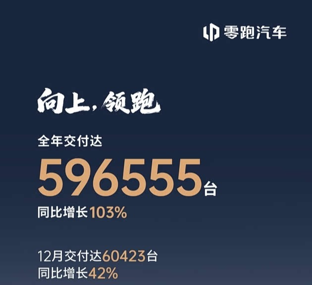首先来看去年的新能源汽车销冠比亚迪。据比亚迪今天发布的产销快报:2026年1月,比亚迪新能源汽车销量为210051辆,相比于2025年1月,同比下降了30.11%。其中新能源乘用车销量为205518辆,相比于2025年1月同比下降了30.67%。如果与去年12月的销量相比,就只能用断崖式下降来形容了。2025年12月,比亚迪新能源汽车销量为420398辆,其中新能源乘用车销量为414784辆。也就是说,今年1月份比亚迪的销量仅相当于去年12月份销量的49.55%,直接减少了一半,销量已经直接腰斩!再来看零跑汽车。零跑汽车去年的销量表现整体优秀,连续几个月位居新能源汽车新势力销量冠军。据零跑今天公布的销量数据:今年1月,零跑汽车的新车交付量为32059辆,相比于2025年1月,同比增长27%。虽然看起来销量在增长,但如果与去年12月的销量相比,数据就根本没法看了。2025年12月,零跑汽车的新车交付量还高达60423辆。而今年1月份的销量已经只有32059辆了,直接减少了28364辆,仅相当于去年12月销量的53%,直接下降了47%!接下来的2月份有长达9天的春节长假,加之处于传统的汽车销售淡季,可以预见整个2月份的汽车销量会比1月份还要更差,各大车企们的销量再继续下降20%-30%是完全有可能的。今年注定是各大新能源车企竞争异常残酷的一年,战况的激烈程度将远超去年。预计到今年五六月份时,车企的新车库存量可能将会明显增加,扛不住的车企可能会率先降价促销。那么您觉得,有哪些车企能存活下来呢?