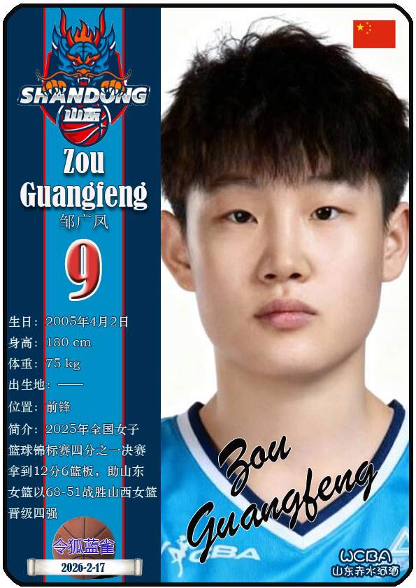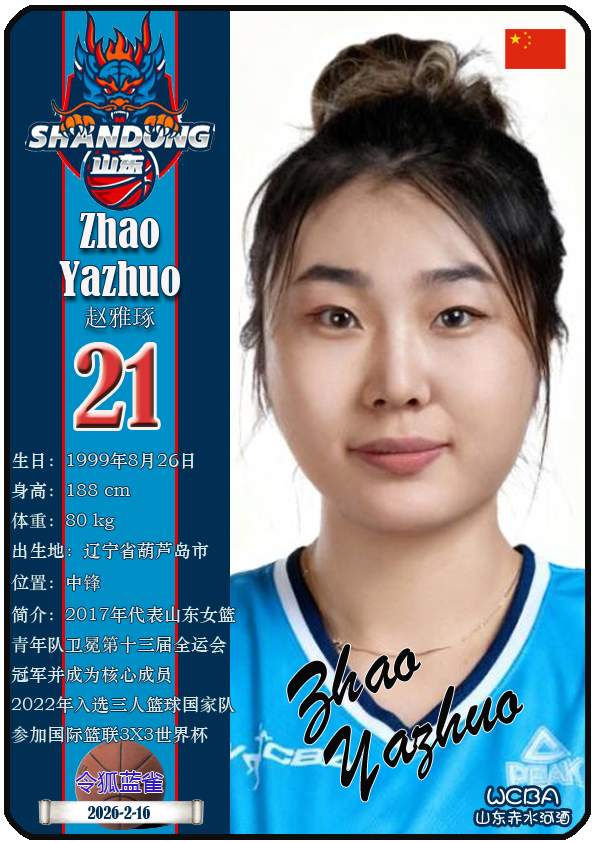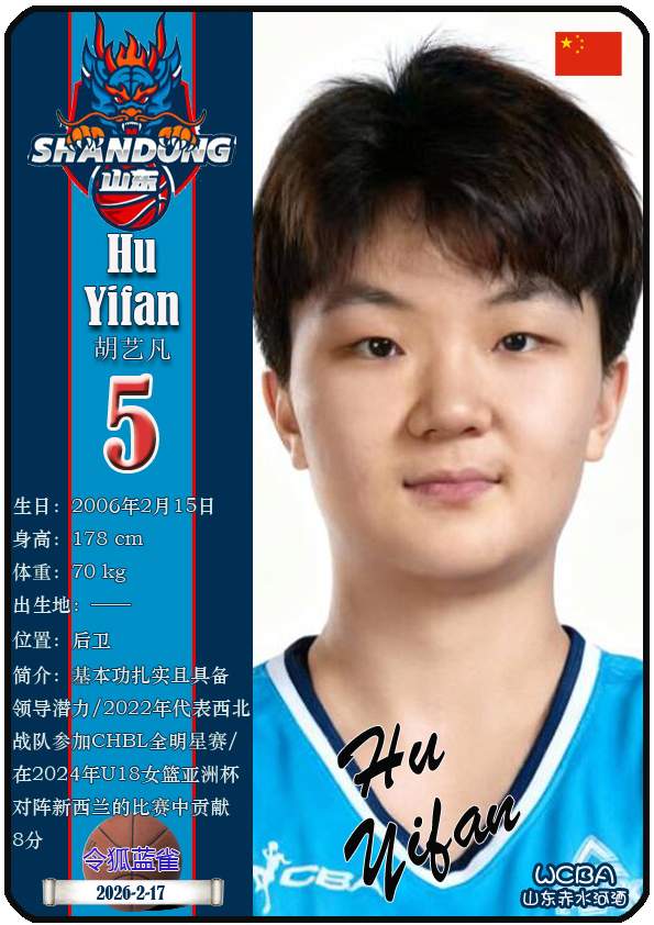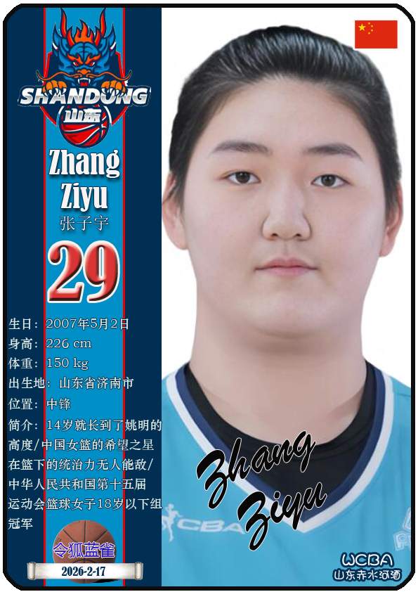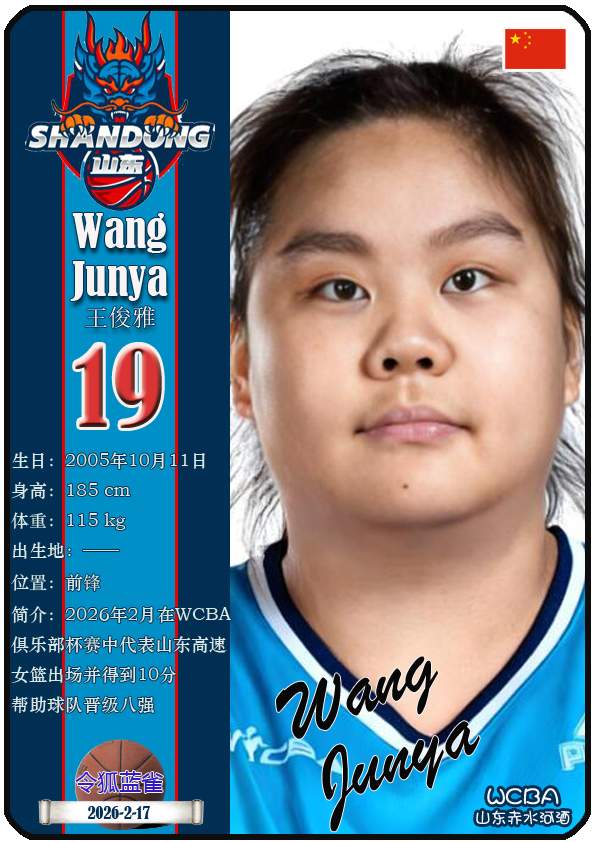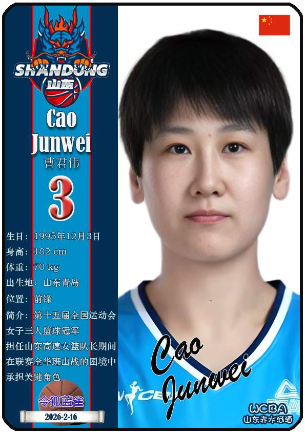 WCBA山东赤水河酒女篮主场位于临沂市临沭体育馆。截至2026年2月17日,球队主教练是侯冰,队内拥有球员杨衡瑜、曹君伟、周静等。本期盘点目前WCBA山东赤水河酒女篮的17名球员(按球衣号码排序):