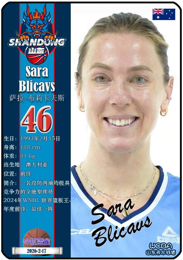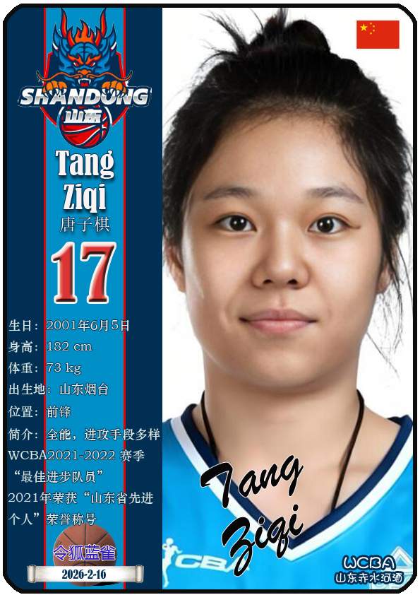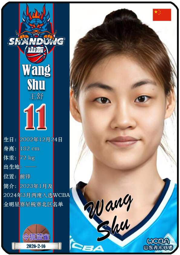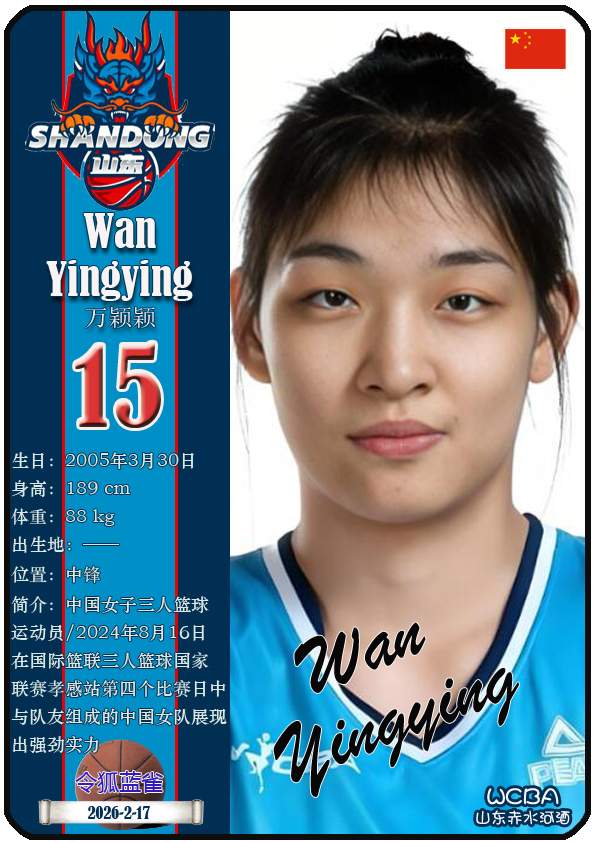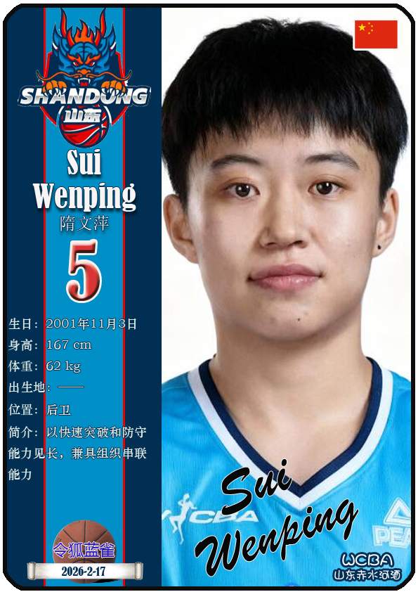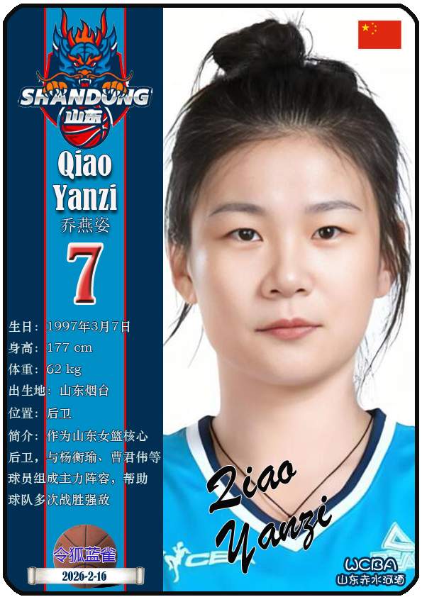 WCBA山东赤水河酒女篮主场位于临沂市临沭体育馆。截至2026年2月17日,球队主教练是侯冰,队内拥有球员杨衡瑜、曹君伟、周静等。本期盘点目前WCBA山东赤水河酒女篮的17名球员(按球衣号码排序):