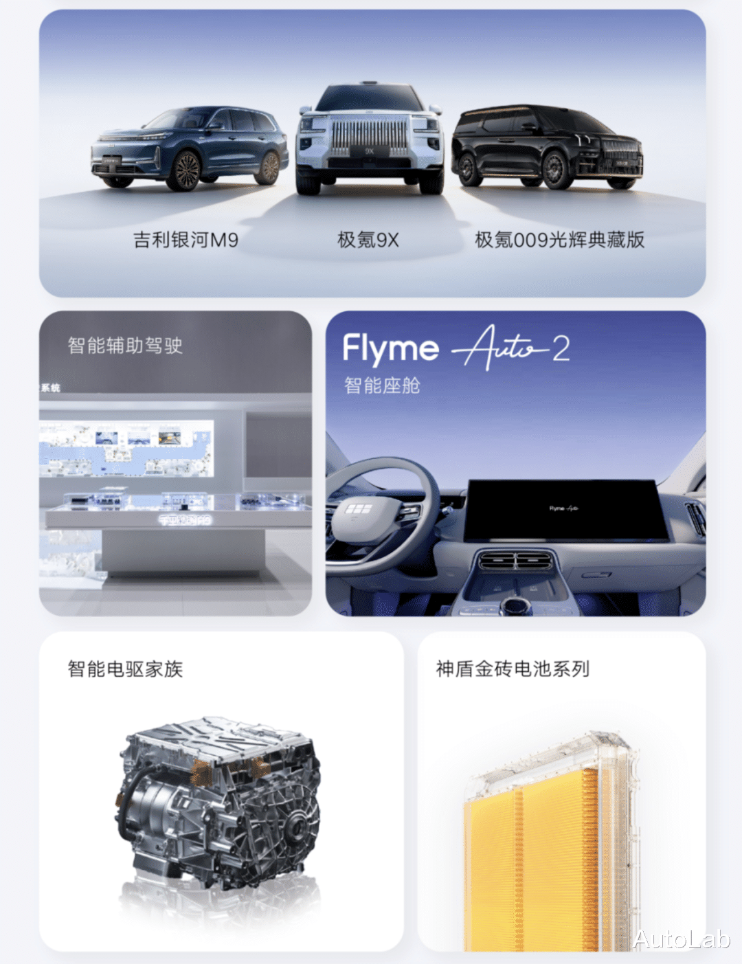 吉利则带来了包括智能辅助驾驶系统、智能电驱、Flyme Auto 2在内的全域AI技术落地成果。