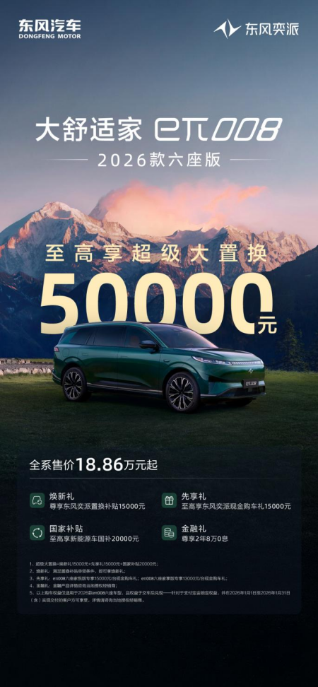 全系至高50, 000元权益直达用户 东风奕派2026开年福利 国补焕新再加码
