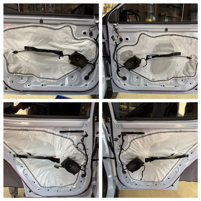 在与车主深入沟通后,前后声场均选用劲浪IS BMW 100L两分频,搭配弗莱德FP-6A处理器实现精准调校,再以弗莱德FED-800 8寸超薄低音弥补低频短板,配合大能超级盾隔音工艺,从源头提升音响表现。施工环节,大家可以看到,原车门板内部仅覆盖一层薄塑胶纸,毫无隔音效果,这也是原车音质浑浊的重要原因。针对这一问题,技师先将门板清洁,随后贴上大能超级盾隔音材料,通过双层密封处理,有效阻隔外界噪音,同时为喇叭创造稳定的发声环境。