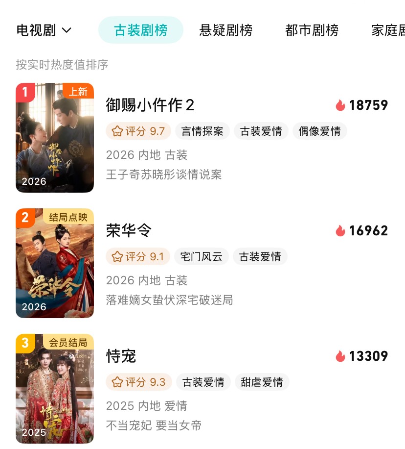 就在大家都把目光聚焦在这部大制作上时,一匹黑马悄无声息地杀了出来,直接掀翻了开年古装剧的热度榜单。
