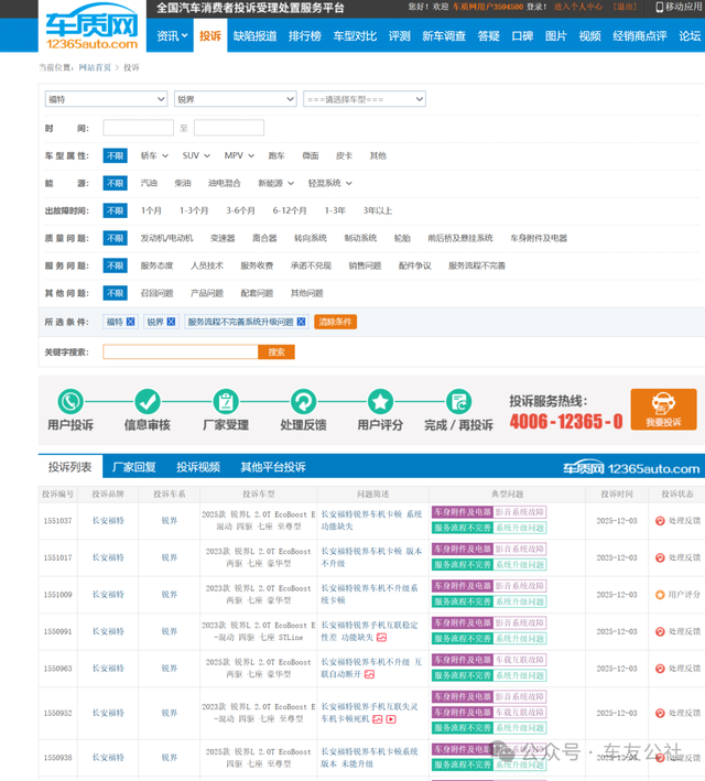 带着车主核心诉求,车友公社第一时间拨通长安福特官方客服电话951995沟通事件进展及解决方案,客服工作人员回应称已详细记录相关情况并同步上报至相关部门。但截至发稿,车友公社及车主均未收到长安福特针对上述问题与诉求给出的正式回应与明确解决方案。