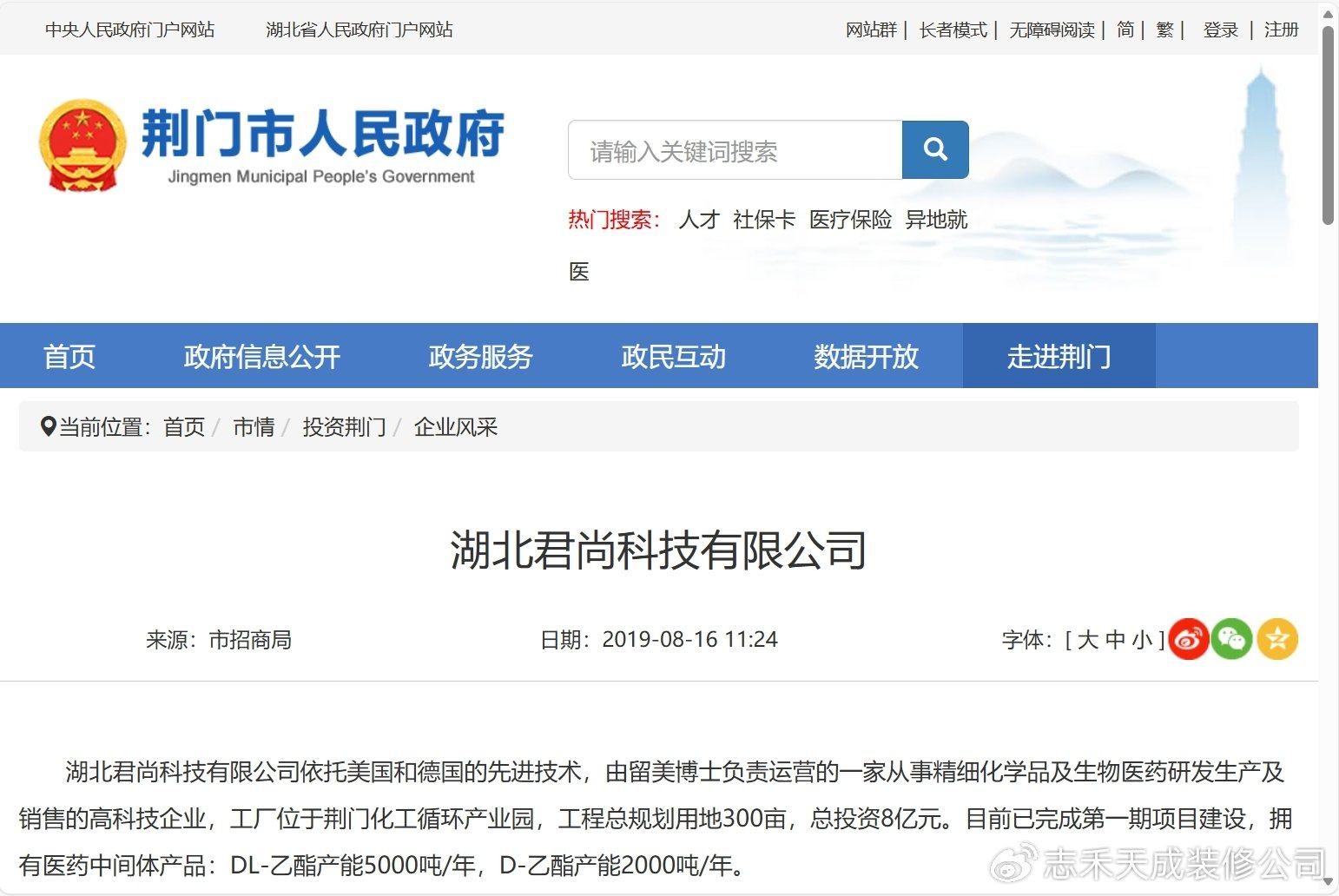 我们湖北志禾天成装饰设计工程有限公司特意在介入垫资建设之前在网上查了一下该公司的信息,看到荆门市政务网上的新闻,喜不自胜。