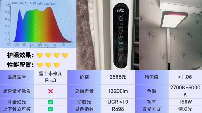 护眼大路灯第6名:雷士未来光Pro3;支持在2700K–5000K色温区间内自由调节。