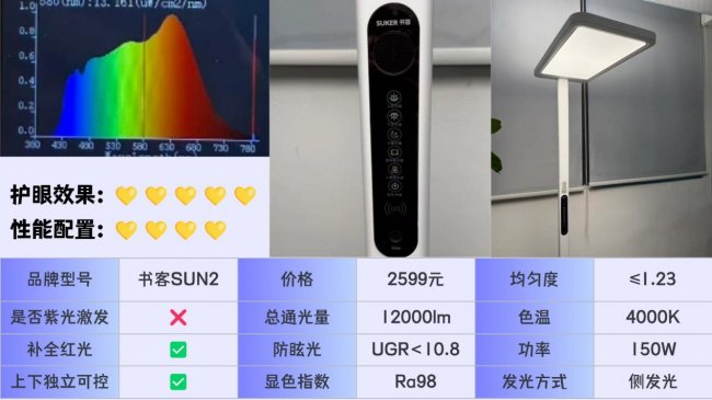护眼大路灯第1名品牌介绍:书客护眼大路灯SUN2;被多家权威检测机构一致认可,誉为同规格下护眼效果最佳、耐用性最强的产品!