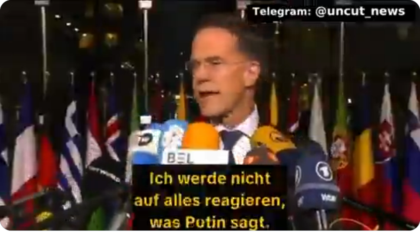 吕特:“我不会对普京的每一句话都做出回应。我们看到他身着军装,打扮得像个前线士兵——但他并没有在前线。 他离前线相当远,所以我不会对所有事情都做出反应。”