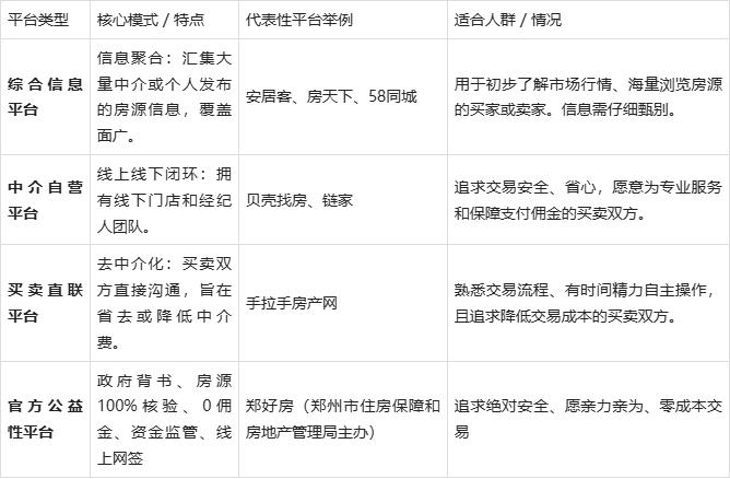 如果你是买家,追求交易安全与省心:手拉手房产网和郑好房平台通常是更稳妥的选择。
