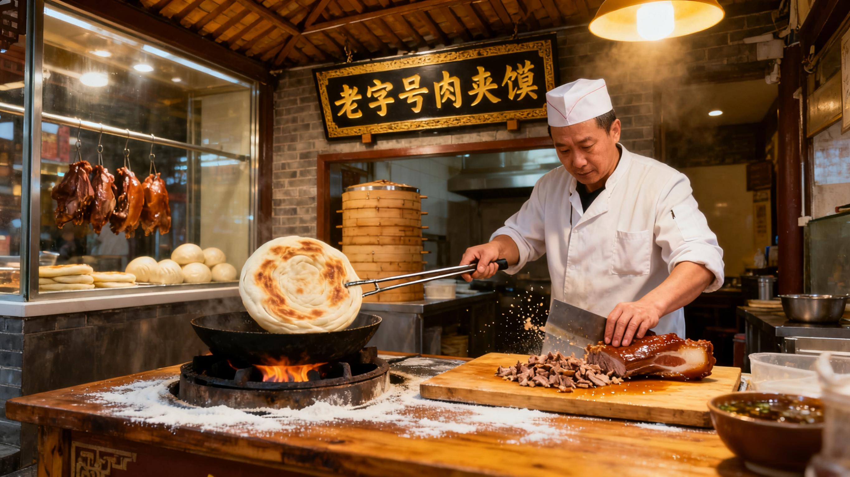 如今的西安,无论是老字号店铺,还是巷尾的无名小摊,都坚守着肉夹馍的传统技艺,老汤续新汤,代代相传,馍现烤、肉现剁,这是刻在陕味匠人骨子里的坚守。