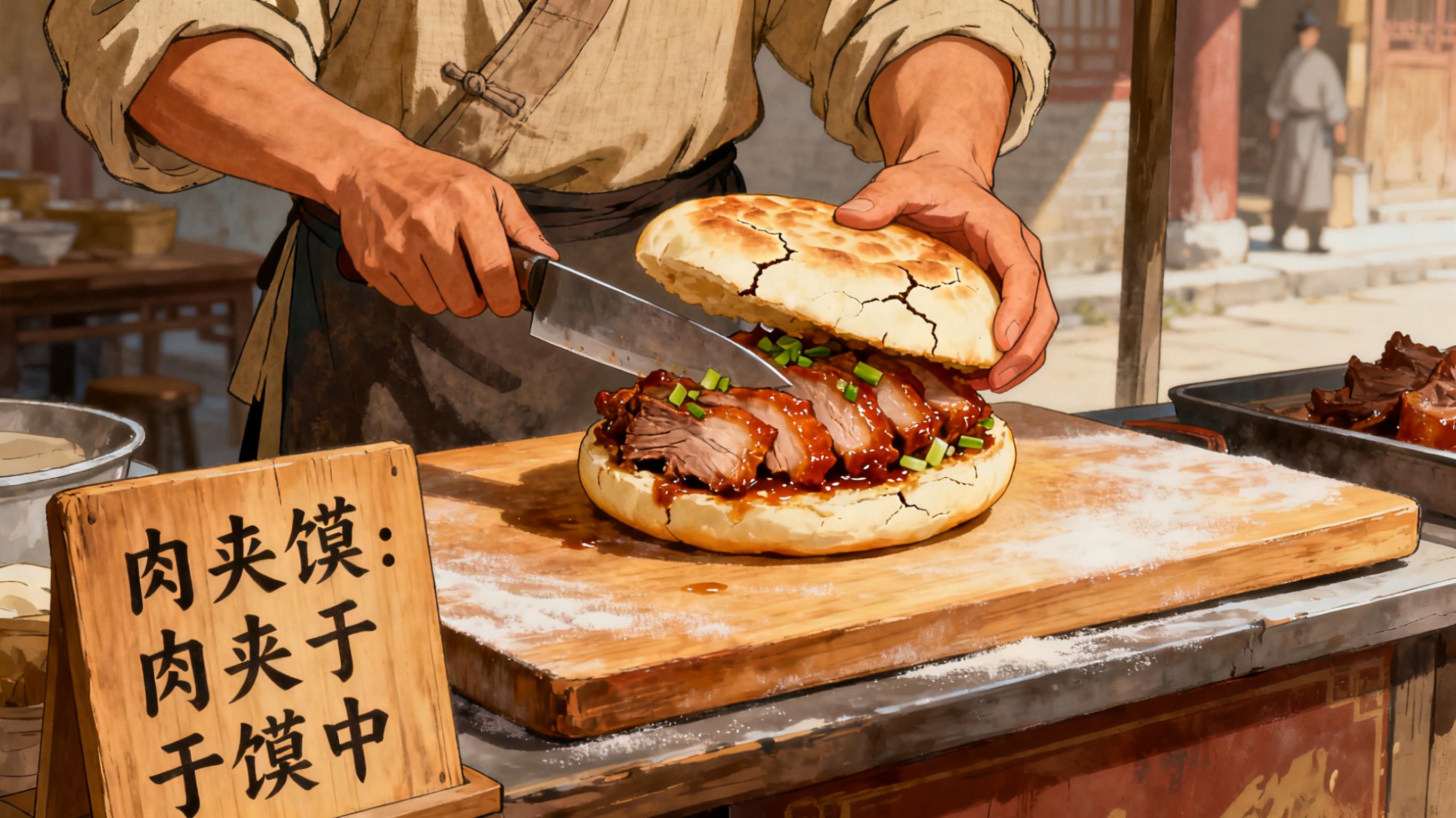 更有趣的是,唐代已有了“饼夹肉”的食用场景,《隋唐嘉话》中记载,唐太宗曾撞见大臣宇文士及“剁肉抿饼”,夺饼食用后怒气全消,这一细节,便是早期肉夹馍吃法的生动佐证。彼时的长安,坊市间的小摊上,腊汁肉夹着现烤的面饼,成为文人墨客、贩夫走卒的心头好,肉夹馍的雏形,在盛唐的烟火气中逐渐清晰。
