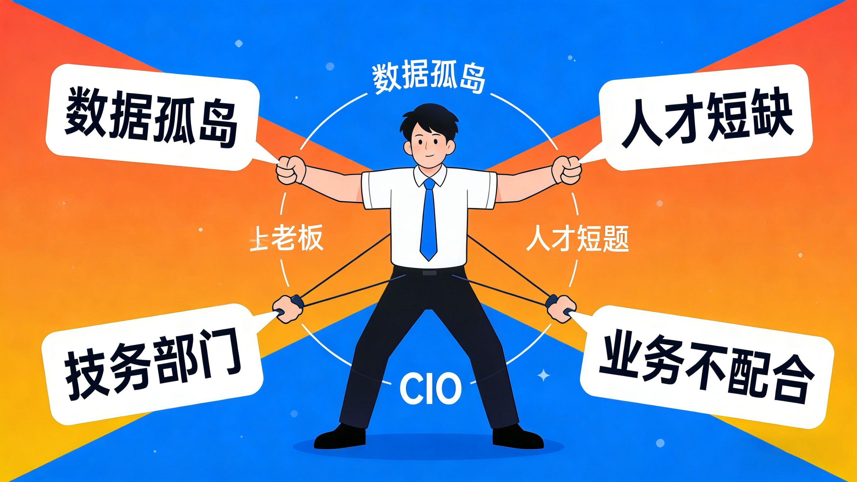 CIO 的无奈最扎心:“明知不可为,却不得不为。” 一边要应对老板的高压 KPI,一边要面对技术瓶颈 —— 大模型与业务系统融合难、数据质量差、AI 人才难招,还要哄着业务部门配合。可业务部门的焦虑也藏不住:担心 AI 取代岗位,领导怕手下人变少削弱权力,干脆用 “太忙” 当挡箭牌,拒绝参与需求调研。最后 AI 项目成了 “闭门造车”,训练出的模型满是 “AI 幻觉”,被业务部门嘲讽 “还不如人工靠谱”,钱花了不少,价值却半点没见。