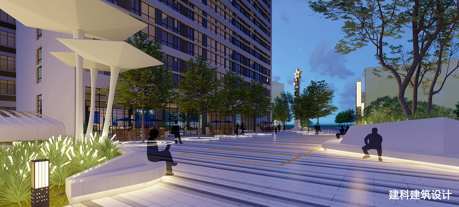 当园区的星灯漫过天际线,这里是科技与松弛的「温柔接口」:星型灯柱挑起夜的轮廓,把星空搬进园区的步道旁;发光石阶与座椅裹着暖光,随时接住敲完代码的松弛;伞下的露台连着凉风,咖啡香混着树影,是会议室到生活的「缓冲带」。