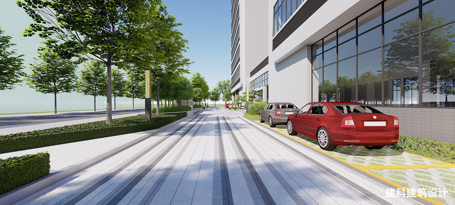 林荫裹着整洁步道,灰白石纹衬着树影轻晃,连路灯都带着简约的设计质感。晨会的清晨,脚步落进的是“高效办公”与“自然舒展”的双重节奏;敲完方案的午后,下楼是风裹着叶香的通勤路。