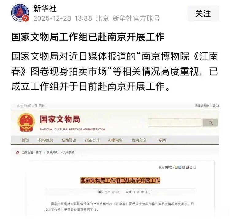 目前,国家文物局已成立工作组赶赴南京核查,江苏省委省政府也组建多部门调查组,针对南博受赠文物保管处置、馆藏文物安全等问题全面调查,明确对违法违规问题绝不姑息。徐湖平作为当年文物处置的核心负责人,其被带走标志着案件进入实质性核查阶段,不仅将厘清《江南春》图卷的真实流向、流转链条断裂等关键疑点,更将对文博系统的监管底线进行全面检视。