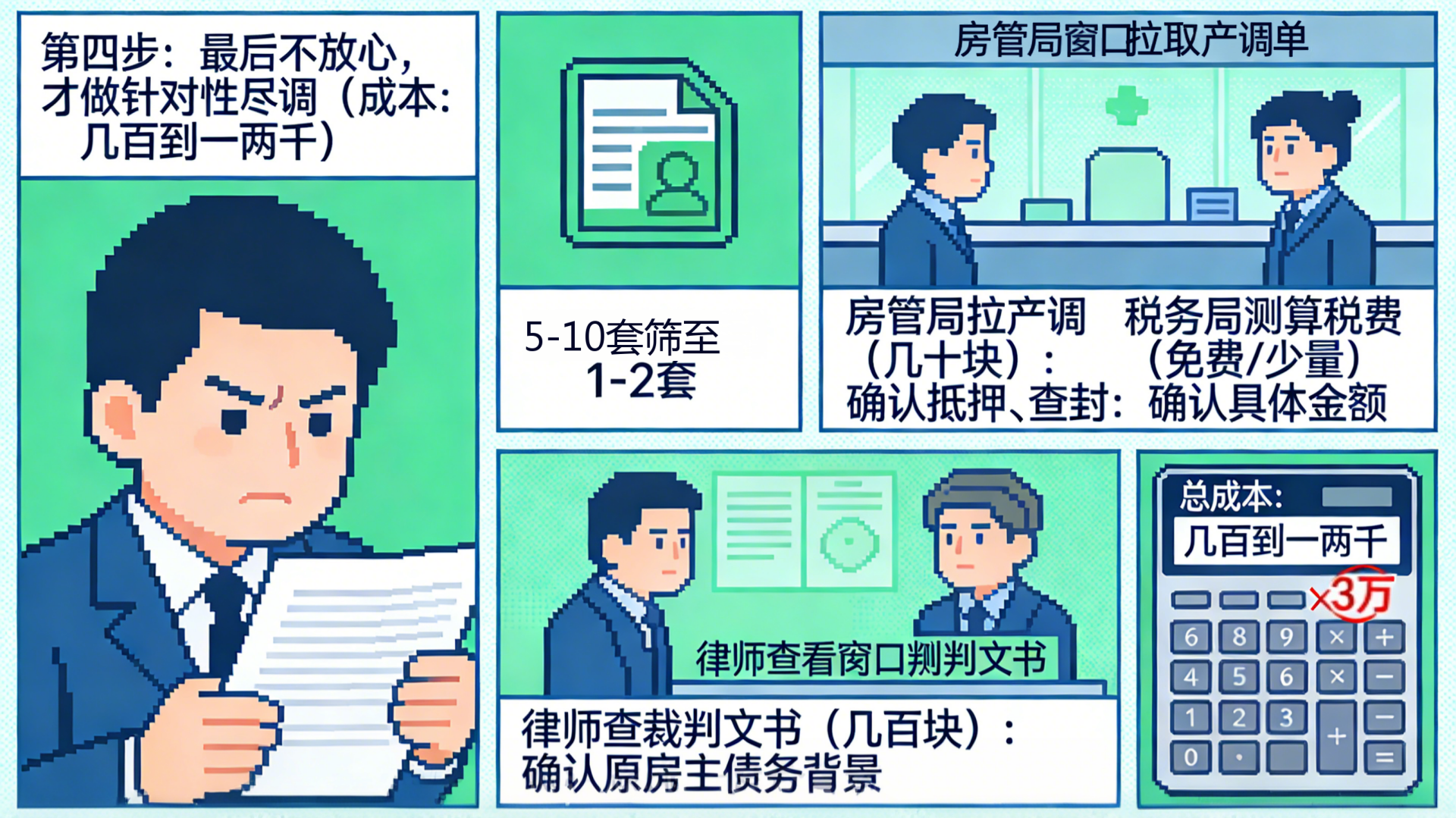 第四步:最后不放心,才做针对性尽调(成本:几百到一两千)到这个阶段,5-10套已经筛到只剩1-2套了