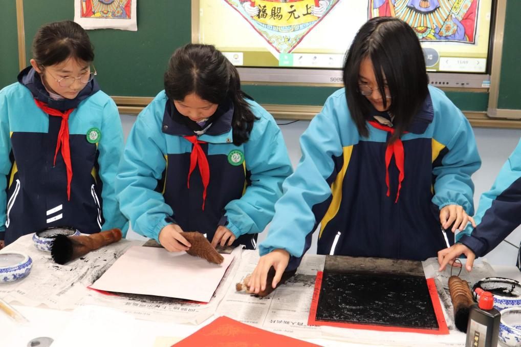 ▲同学们在木版年画启蒙课上开拓艺术视野