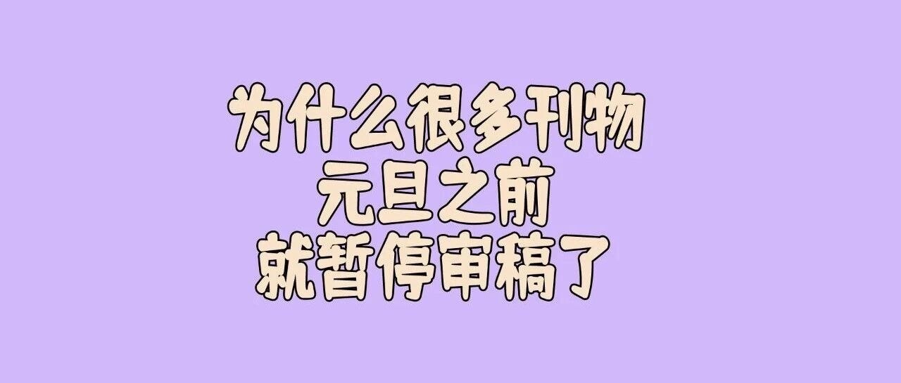 这位作者问为什么很多刊物,每年一到快元旦就挂出一句“暂停审稿,待元旦后恢复”的公告。我第一次看到类似通知的时候,也觉得莫名其妙:投稿不是越早越好吗,怎么离节日越近,反而越不让投?