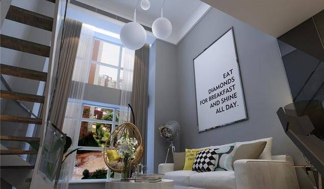 二楼作为休息的区域,为了保持空间的通透性以及采光性,二楼区域没有在做明显的区域分割,开放式的衣帽间及卧室最大限度的保留空间的通透性。在整体颜色选择上以灰色和白色为主要颜色,搭配亮色的软装饰品,让空间变的更加灵活。