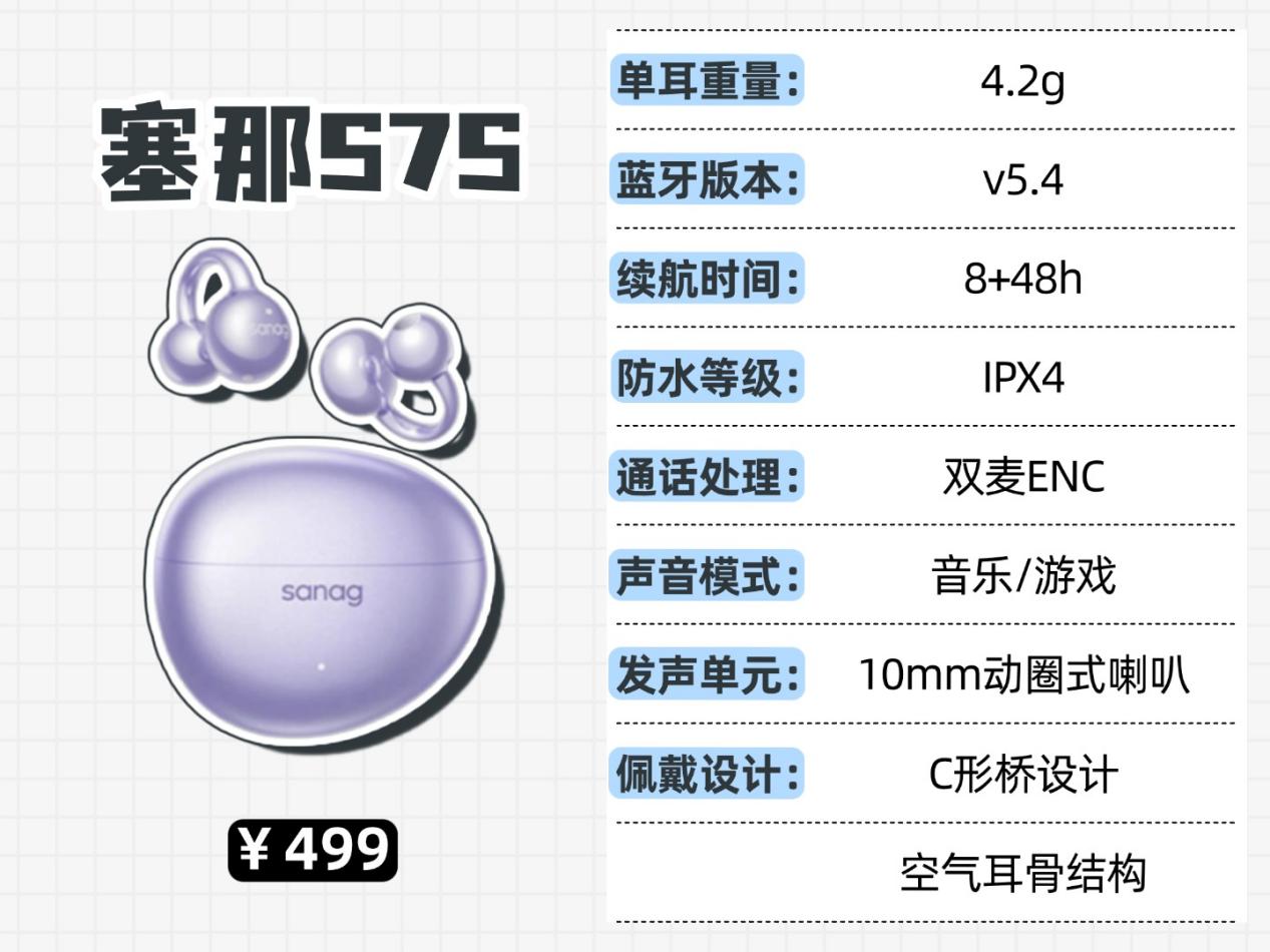 耳机亮点:C形桥设计+空气耳骨结构+10mm动圈式喇叭+塞那音频增强技术