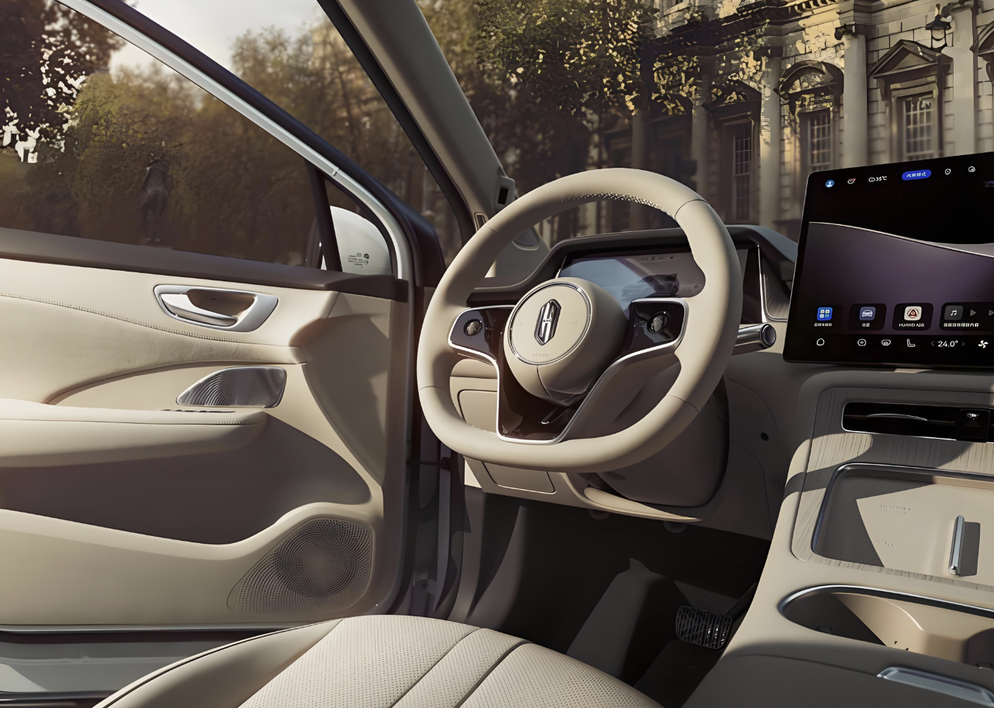 据猜测,尚界Z7汲取鸿蒙座舱设计风格,并在细节上进行差异化处理,上深下浅的配色方案显得更加温馨,浅卡其色的植绒车顶、黑灰色软性材质铺陈的中控台桌面和四周门板,还有浅卡其色的超纤皮铺陈,前排配备了两个桶装赛车化座椅,后排则配备了填充厚实的沙发座椅,为前排乘客提供了更加激进、运动的氛围感,也为后排乘客带来了更加舒服的乘坐体验。中控台配备了赛车化小尺寸方向盘和大尺寸换挡拨片,操控岛区域有手机无线充电面板,USB接口、Type-C接口、HUAWEI MagLink接口灯实用性配置,还配备了由全液晶仪表、悬浮式中控屏以及副驾驶多媒体大屏组成的带鱼屏设计,