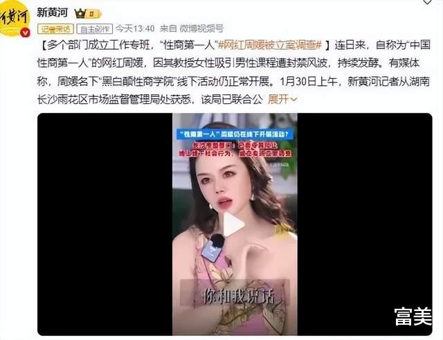 1月30日,长沙雨花区多部门联合立案调查,彻底打破了她的敛财幻梦。目前具体案由尚未完全公布,但周媛的问题早已不止于价值观扭曲。