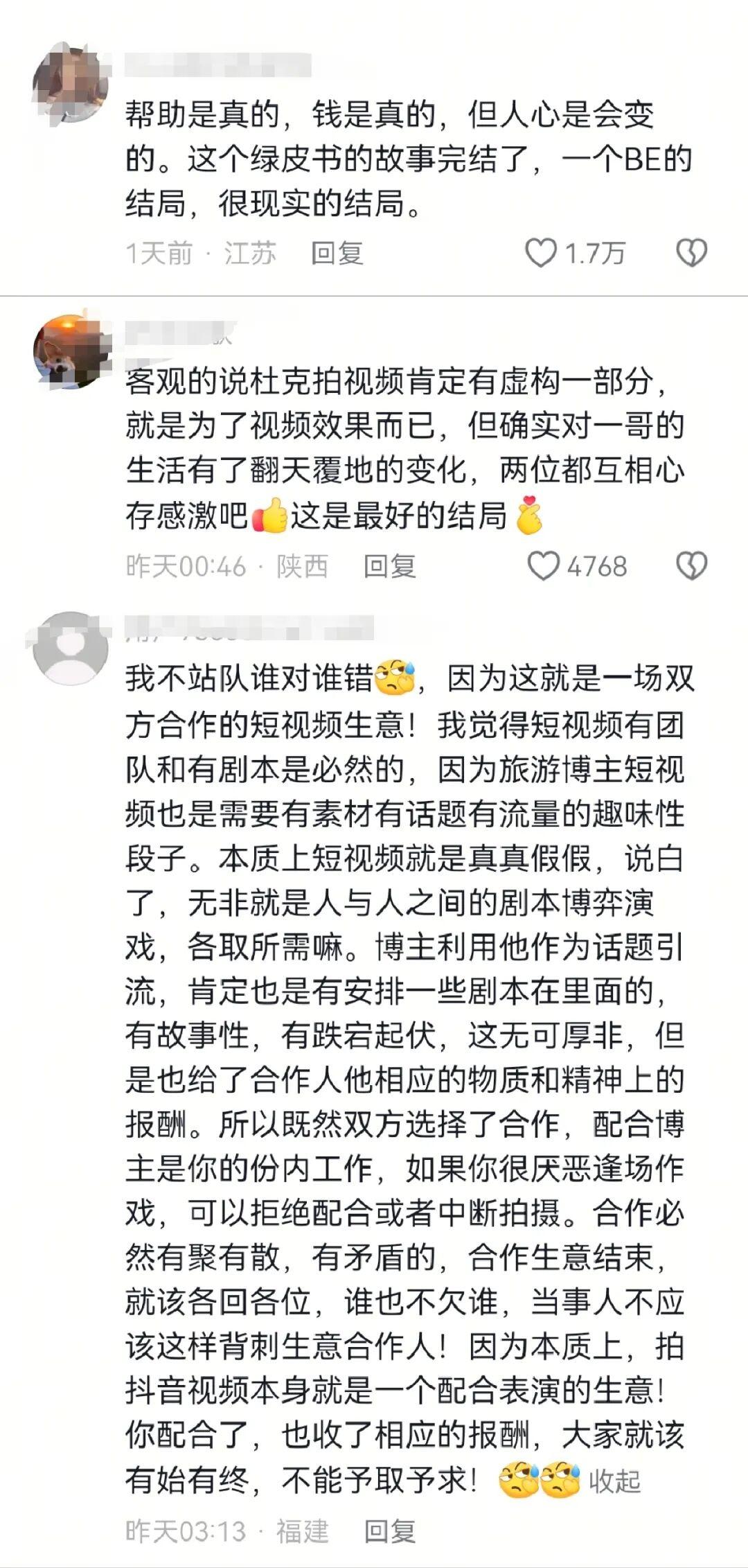 不可否认真情的存在,但当流量和利益占据主要位置,再真挚的关系也会变质。杜克已经不是那个只有30万粉丝的小博主,一哥也不是那个骑着三轮车的底层苦力。