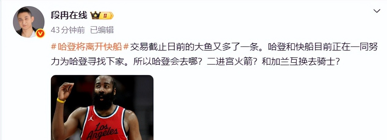 段冉直接爆料哈登的潜在下家,有可能去火箭,也有可能与骑士队的加兰互换。球迷肯定是更愿意看到哈登加盟火箭了。