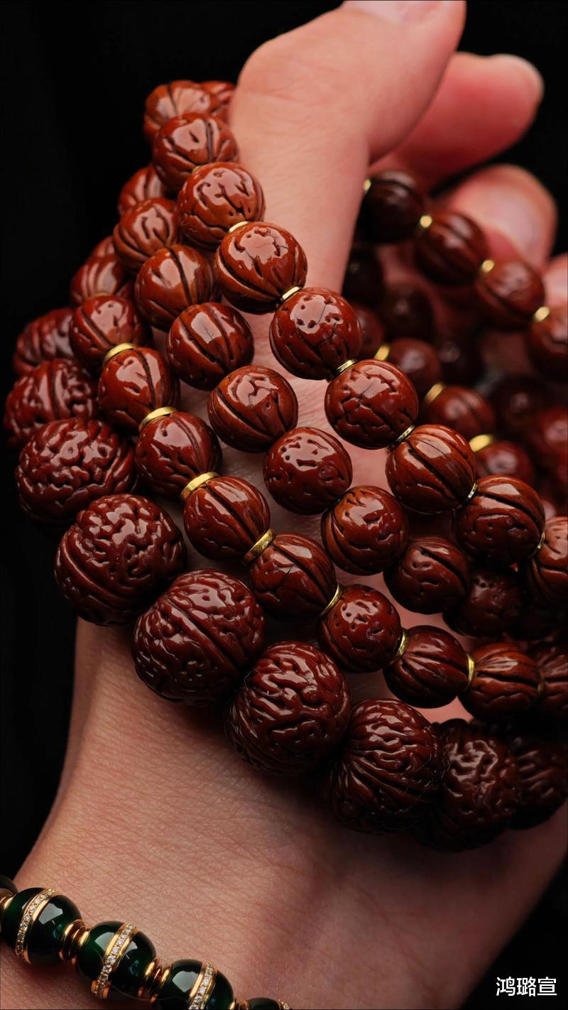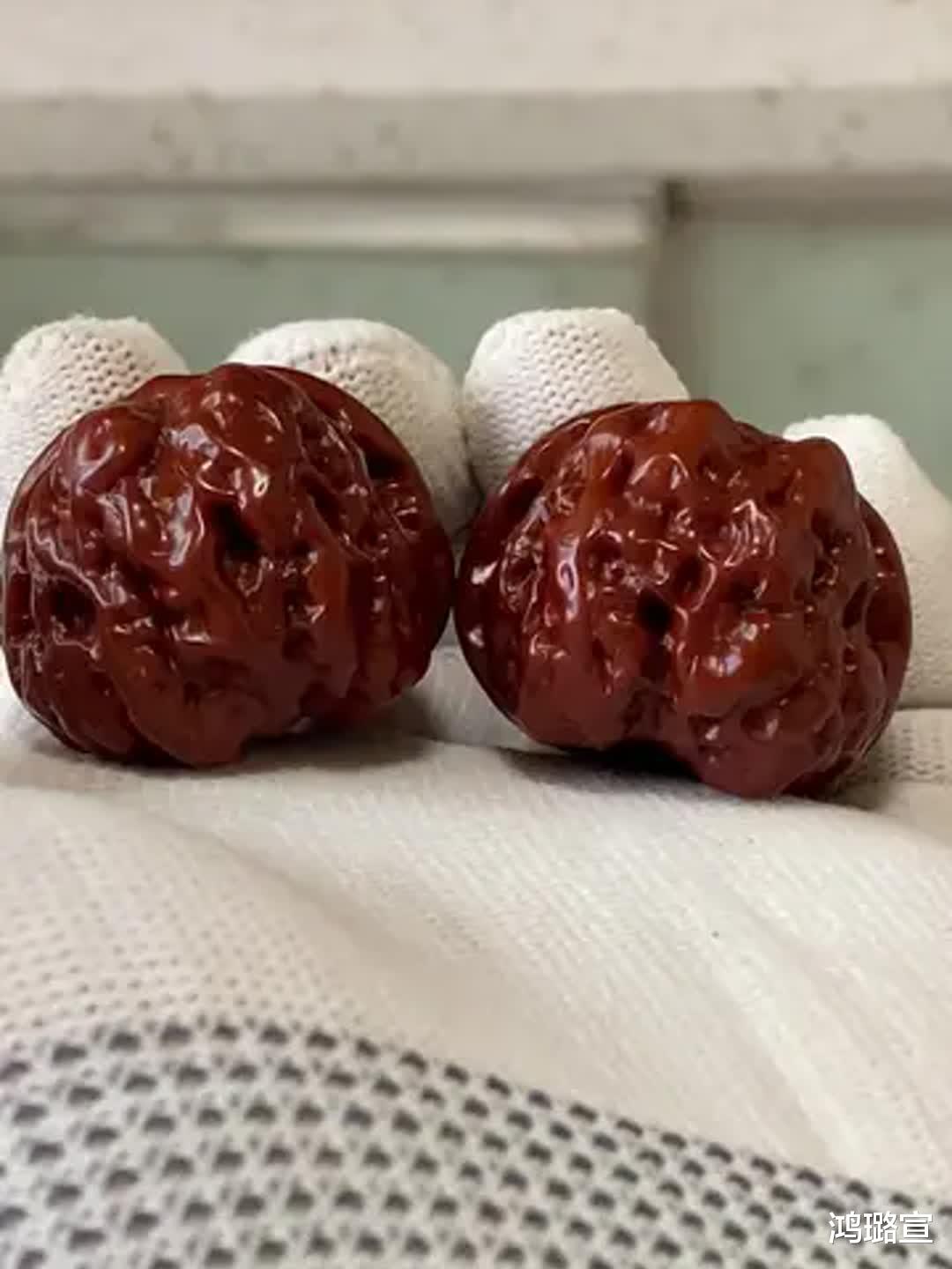 而文玩核桃盘玩到了后期基本上不需要汗液油脂的滋养,主要就是抛光,曾经没有手套的时候基本上就是一个刷子闯天下!但是现在条件好了,练手、玉化两不误,长时间佩戴手套盘玩后其实核心就是对于包浆的极致抛光,那些“不是玛瑙,胜似玛瑙”的颜值核心就是抛光,而关键差别则在于年份的不同,盘玩的越久玉化效果越好!