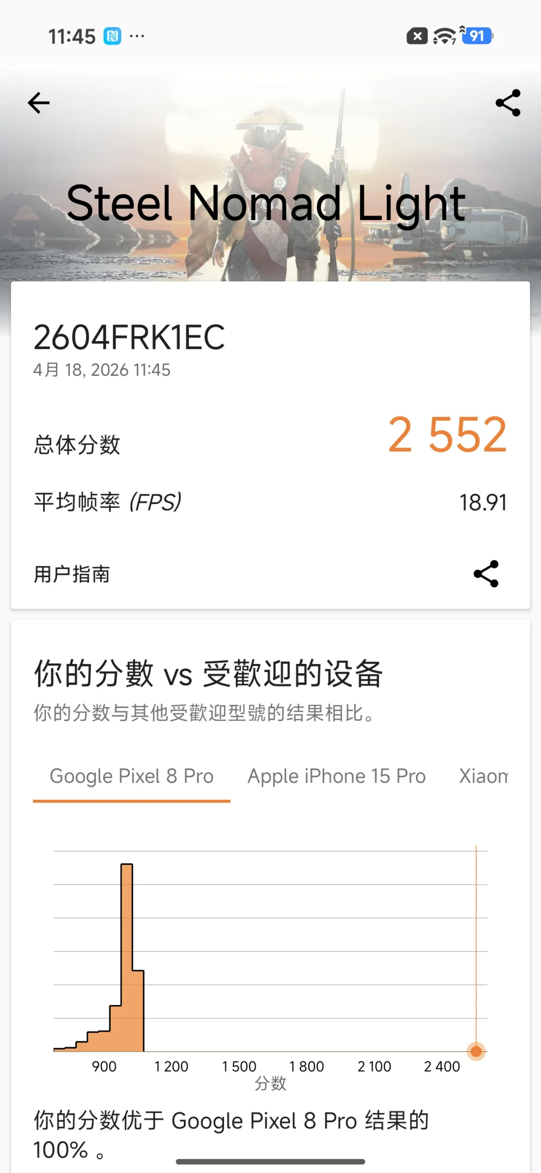 REDMI K90 Max的Steel Nomad Light光追性能成绩