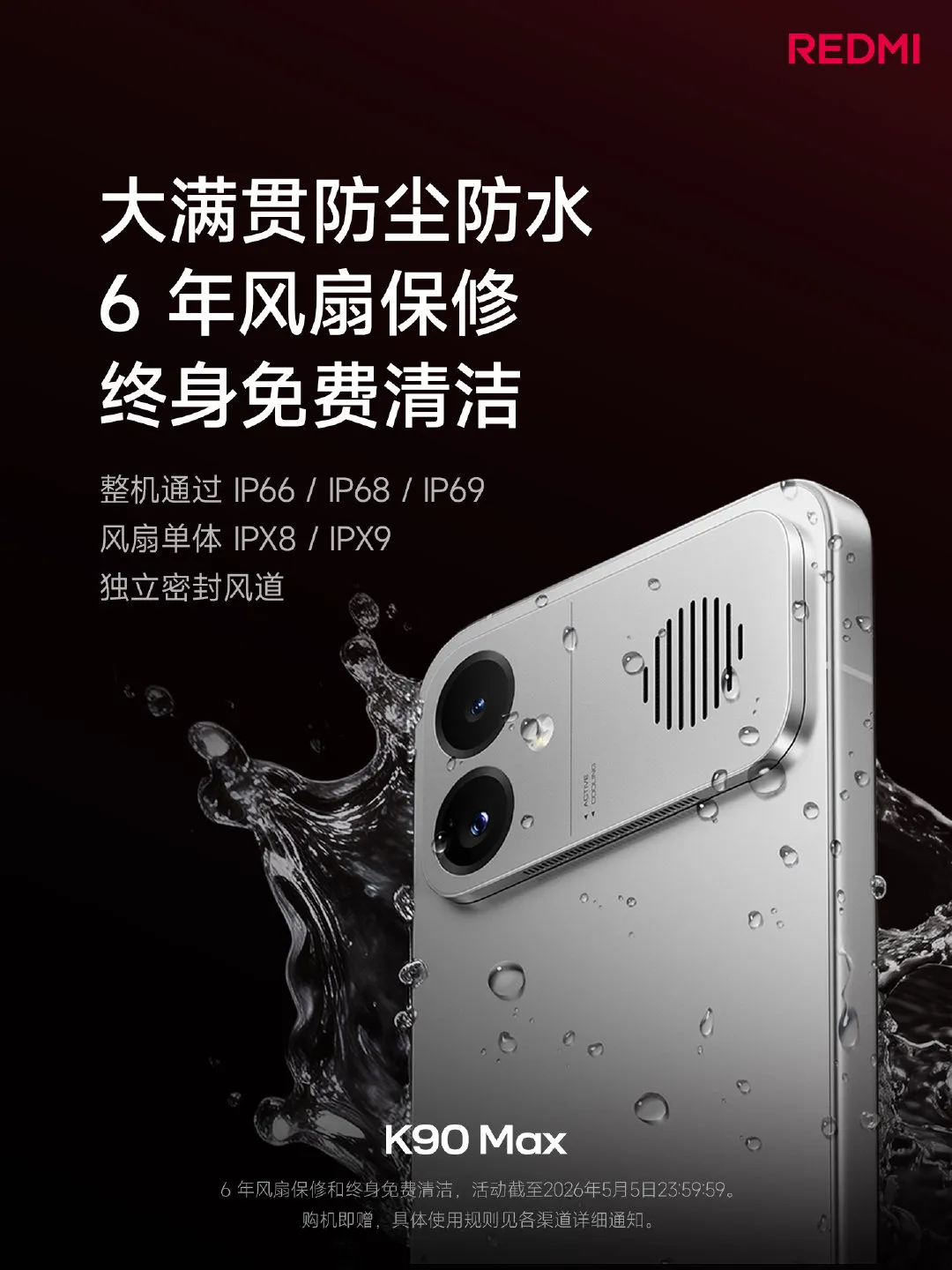 纵观整个移动散热行业的发展,REDMI K90 Max的这套风冷系统,从来不是单一硬件参数的堆砌,而是对移动风冷全链路的一次彻底重构。它从风的产生、风的利用,到噪音控制、场景适配,再到空间设计、防护可靠性,最后落到用户的实际握持体验,全维度解决了行业长期存在的痛点与短板,让主动风冷不再是小众游戏手机的“偏科卖点”,而是能适配大众用户全场景使用的旗舰体验底座。也正是这份从技术底层到用户体验的全面领先,让它当之无愧地坐稳了“行业最强风冷主动散热”的位置,更为整个移动性能旗舰的散热设计,树立了一套全新的行业标杆。