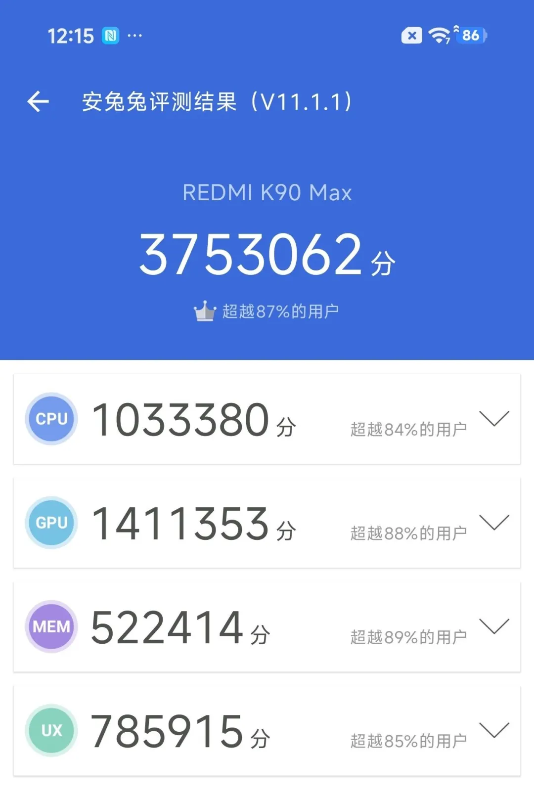 REDMI K90 Max的GeekBench 6.5实测成绩