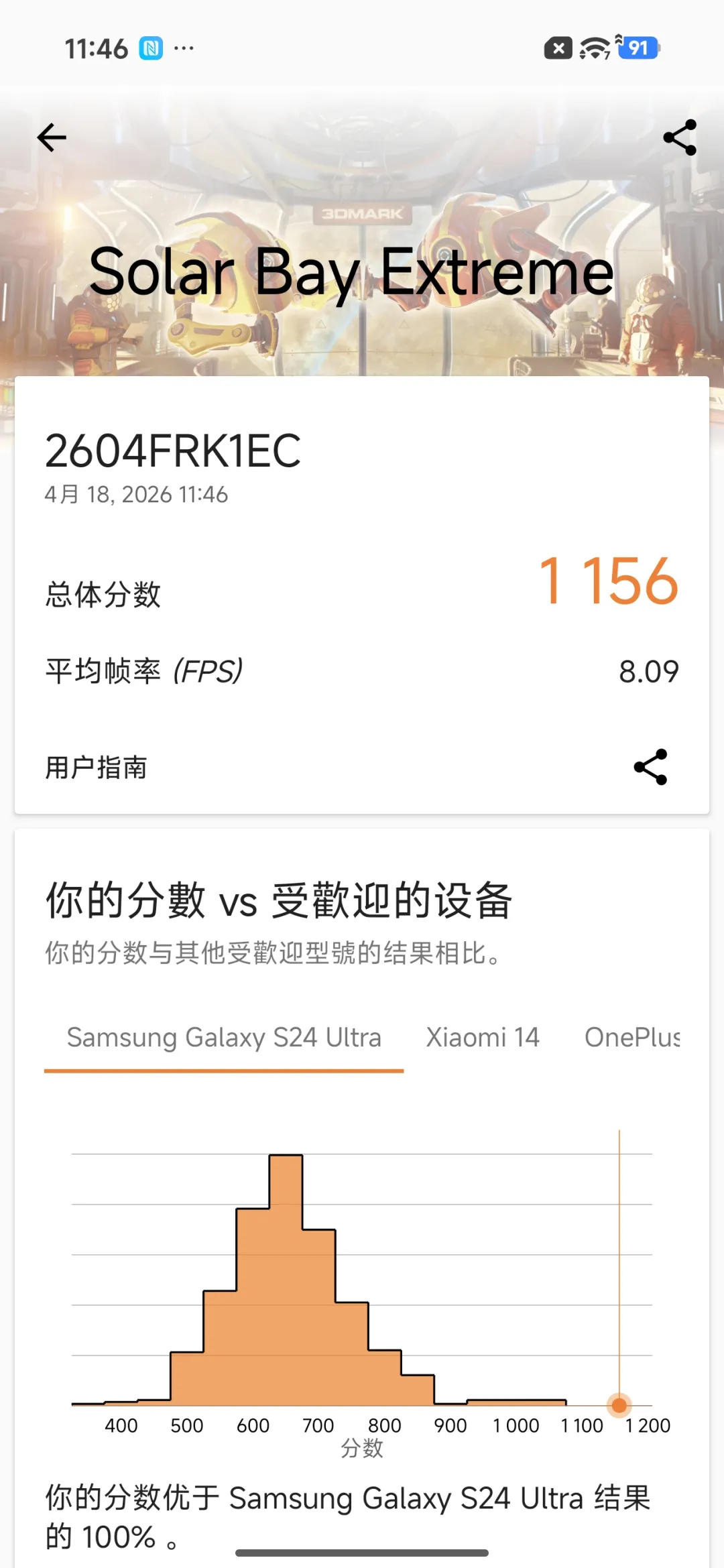 REDMI K90 Max的Solar Bay Extreme实测成绩
