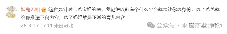 “妖鬼无相”爆料说,这种广告可能是精准定向推送的:“选了爸爸就给你推送不良内容,选了妈妈就是正常的育儿内容。”如果真是这样,那这算法可真是把人性拿捏得死死的,就是苦了那些陪娃看动画片的老父亲,跳进黄河也洗不清了。