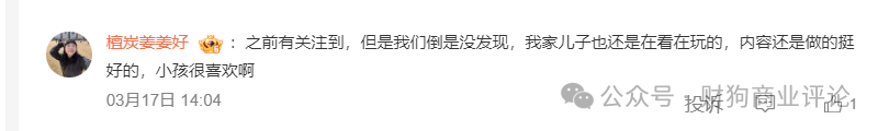 “檀炭姜姜好”也附和道:“内容还是做得挺好的,小孩很喜欢啊。”