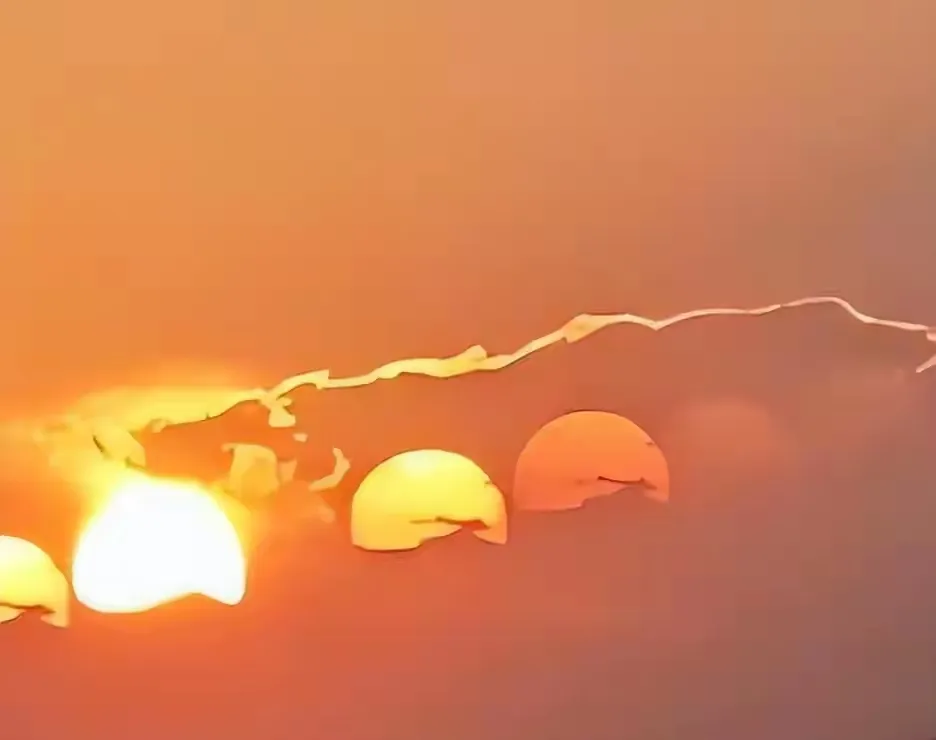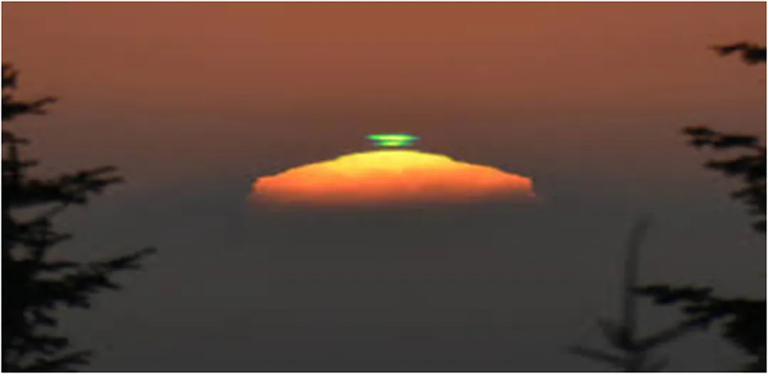 还有一个特别有趣的,叫“绿闪”。就是在日出或者日落的时候,太阳快要完全升起来、或者完全落下去的一瞬间,太阳边缘会突然闪过一道绿色的光,就一瞬间,最多持续一两秒,特别难捕捉。它的原理是太阳光穿过大气层的时候,被大气折射,不同颜色的光折射角度不一样,绿色的光折射角度最大,就会在最后一瞬间显现出来,好多天文爱好者,蹲好几天才能拍到一次绿闪。
