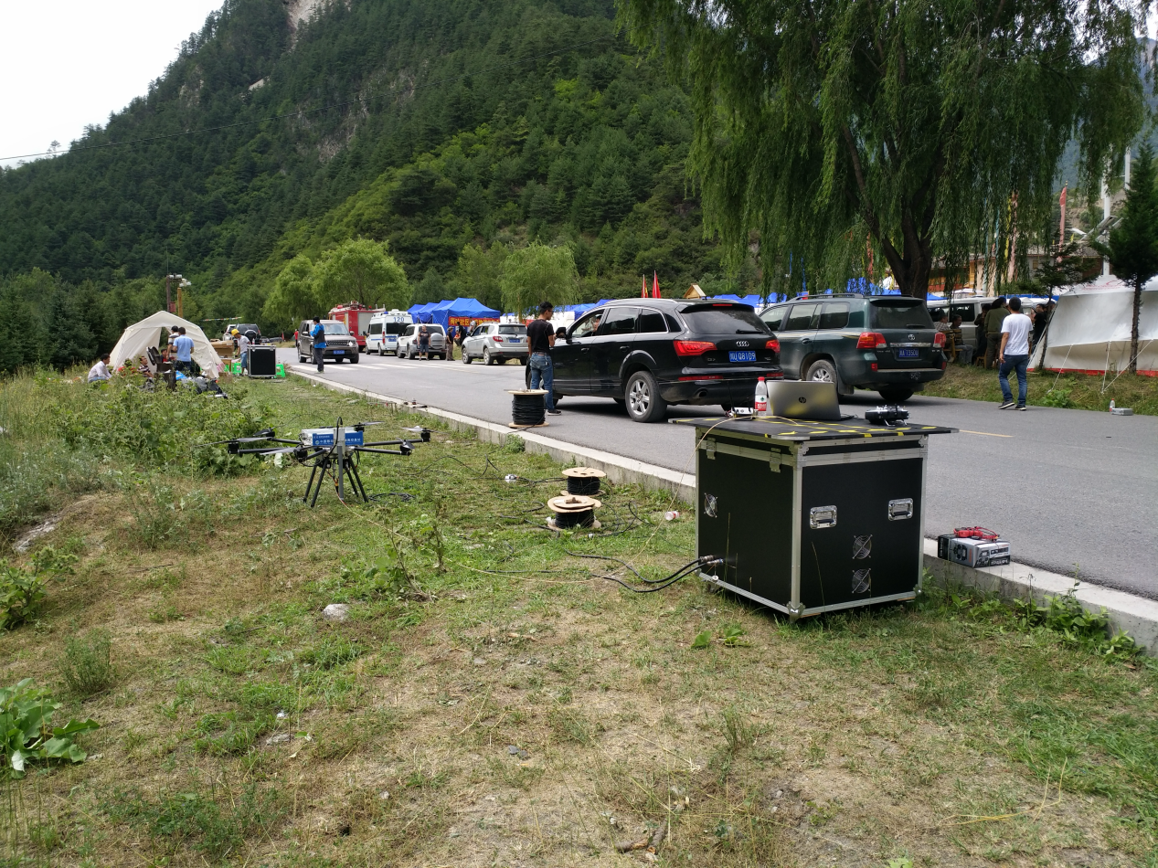 "这套系统在九寨沟地震中创下15分钟恢复通信的纪录。"工作人员展示的现场照片显示,2017年8月,大工科技的系留无人机在余震不断中持续工作72小时,保障了救援指挥通信。