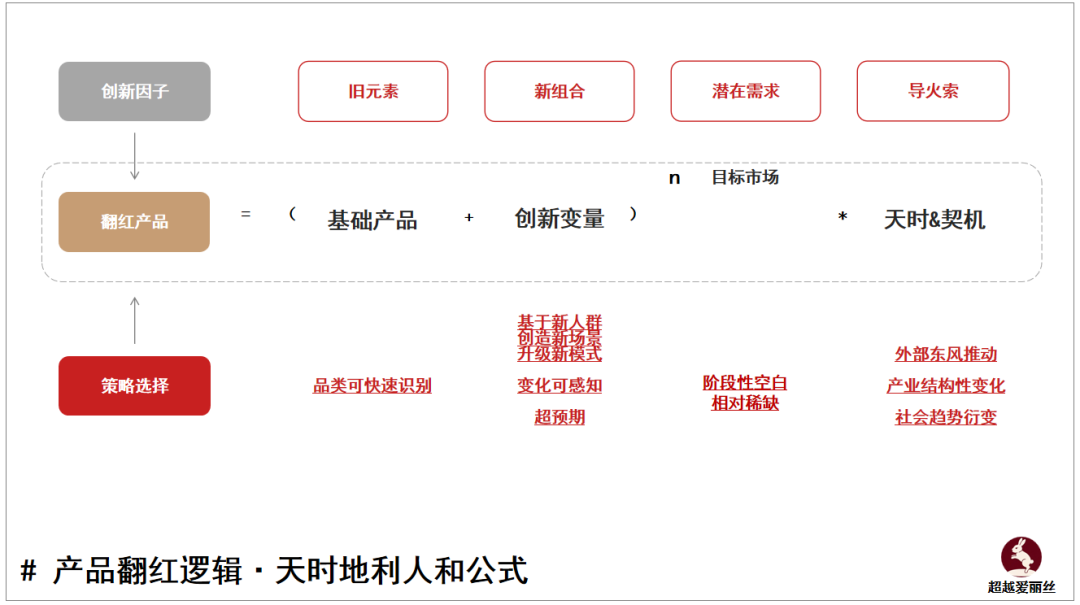 形式会立马被竞对复制抄走,但理解逻辑后可以不断进化、继续引领行业。这款“固体杨枝甘露”实现了旧品翻红,我将其创新逻辑总结为了“天时地利人和公式”: