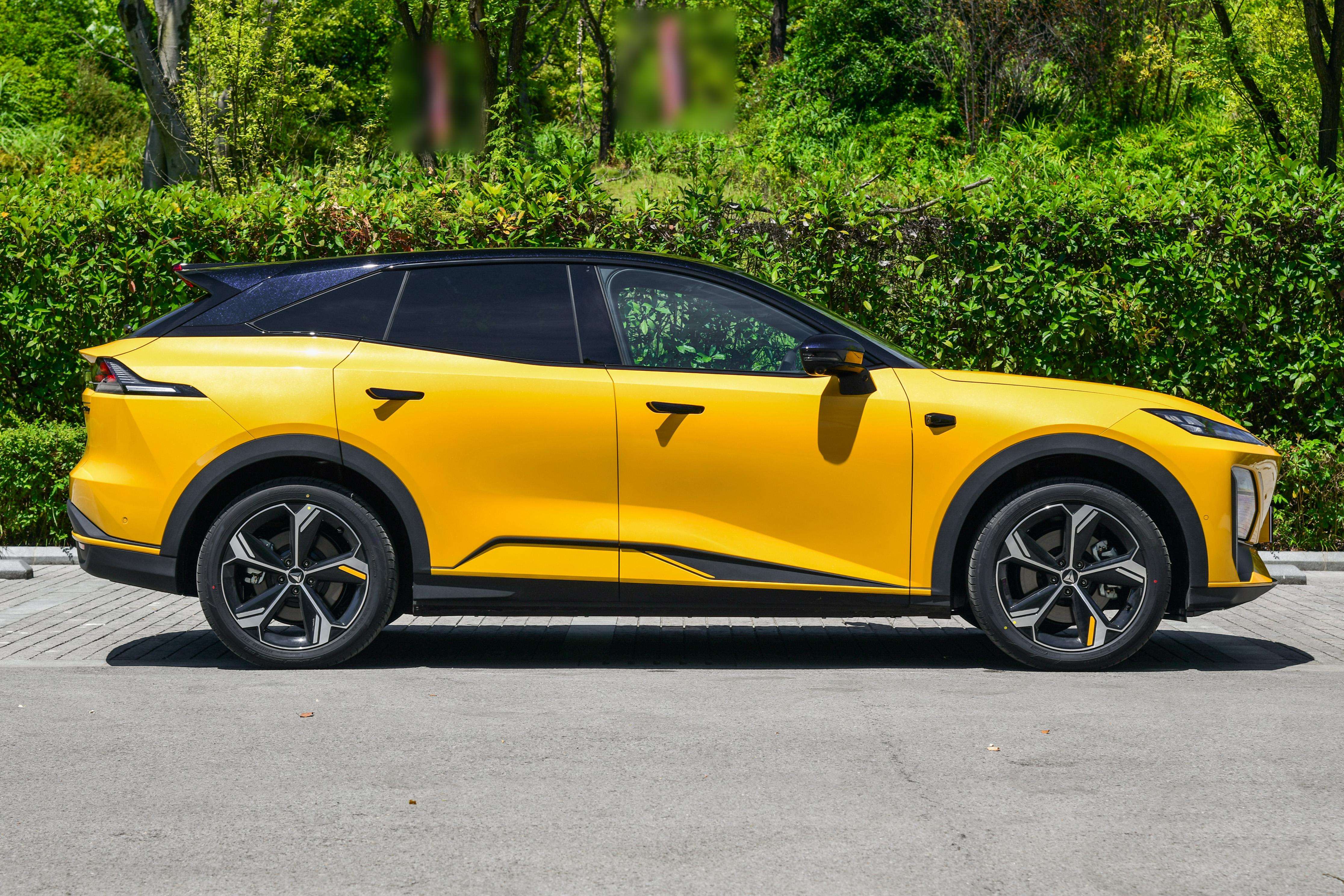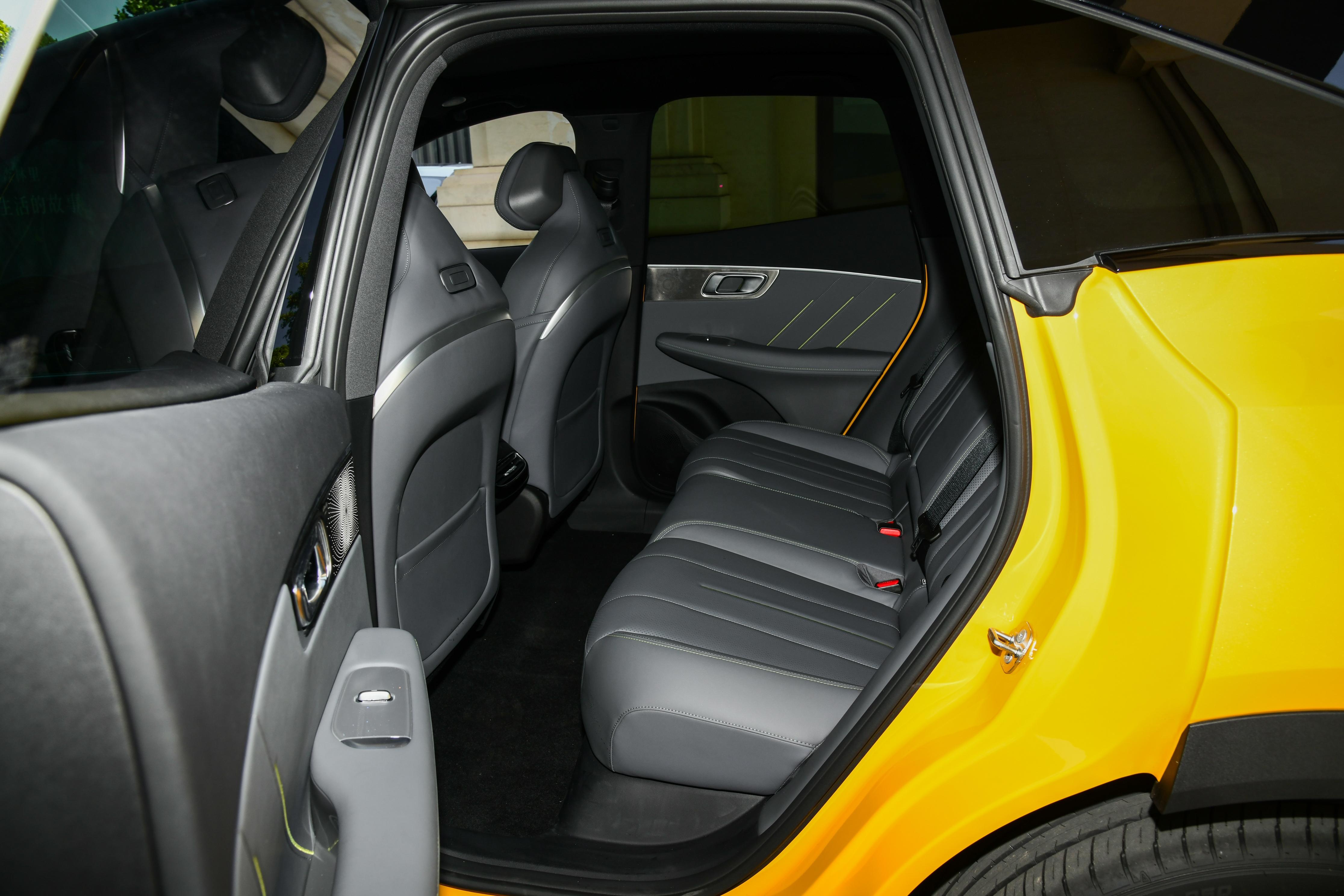 车身侧面能看出设计师在降低风阻上的努力。车顶带着明显的弧度,配合隐藏式门把手和黑化的车窗边框,形成了悬浮式车顶的视觉效果。上扬的腰线和略微溜背的造型,营造出一种蓄势待发的动感。为了进一步优化空气动力学,新车还采用了溜背式尾翼,并将整车风阻系数控制在了0.258Cd。别小看这个数字,更低的风阻意味着高速行驶时能耗更低,对续航有实实在在的帮助。