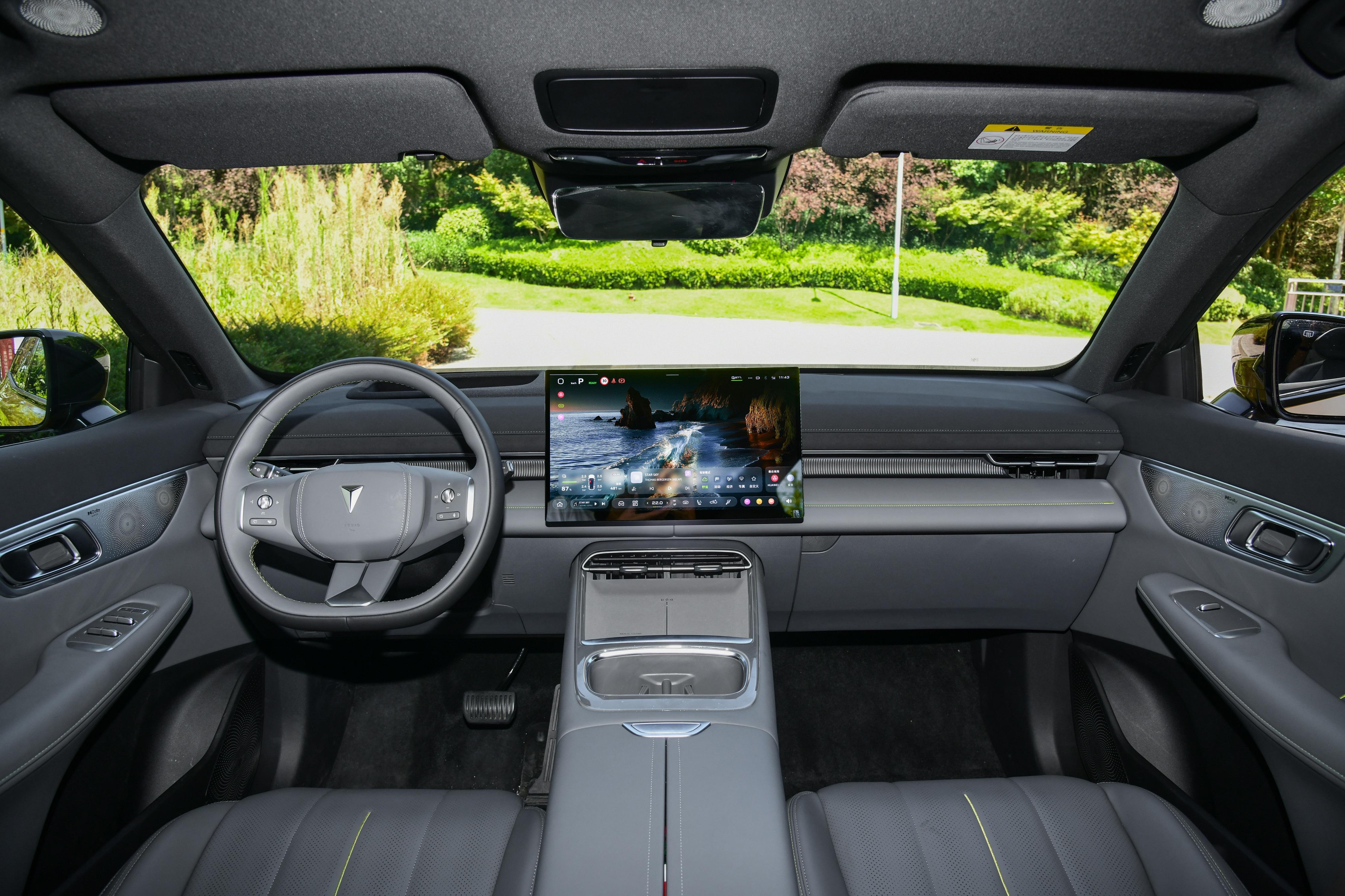 内饰的设计风格走的是简洁科技的路线。环抱式的座舱布局给人一种被包裹的安全感,官方称车内软性材质的包覆面积达到了10.7平方米,中控台和门板等部位使用了触感细腻的超纤绒感麂皮,提升了车厢的质感。内饰提供了月雾灰、热浪橙和暮烟紫等多种配色可选,满足不同审美。