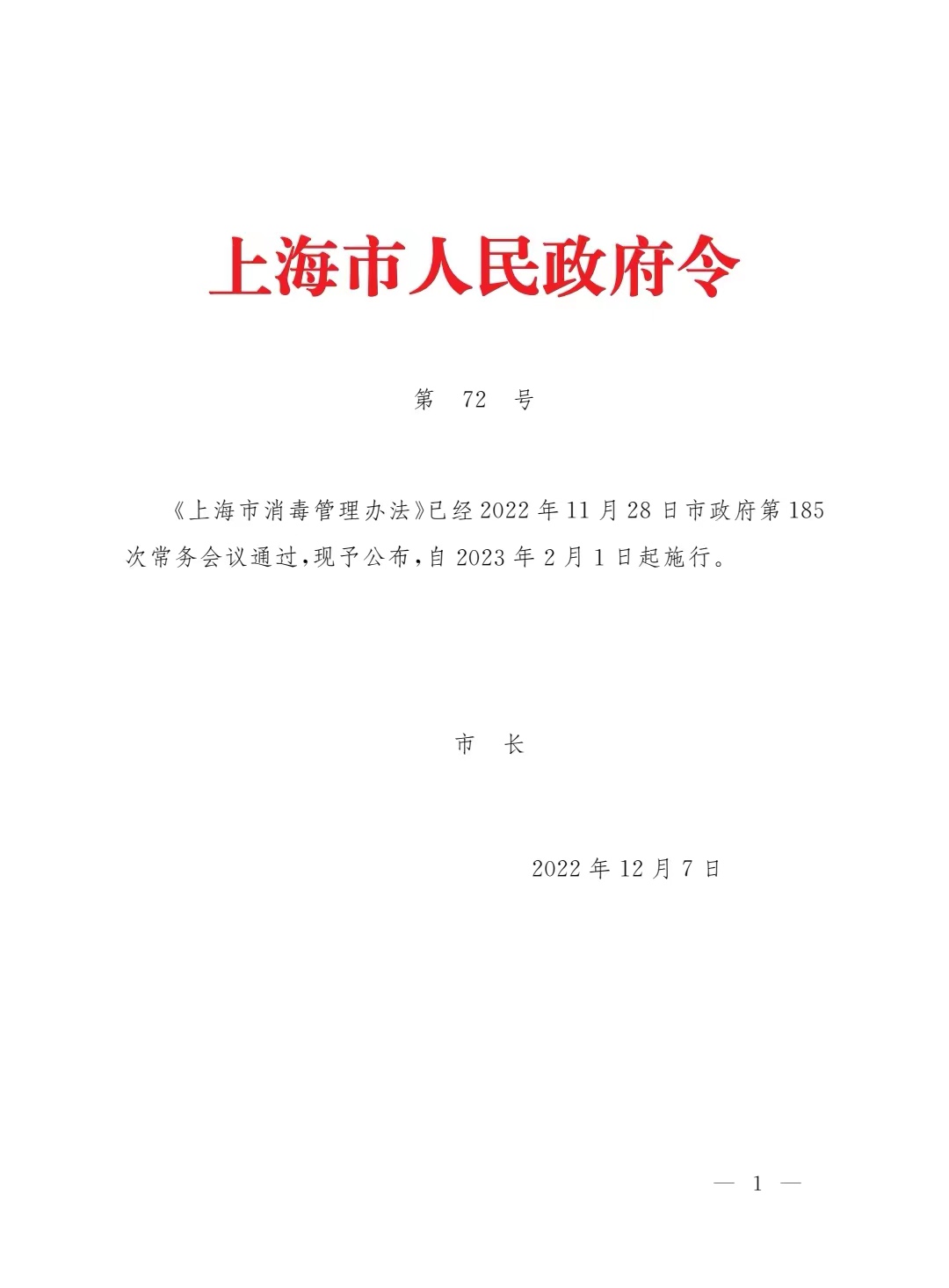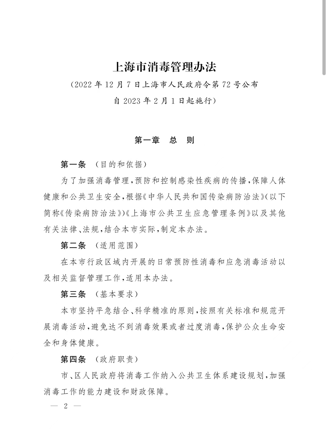 «上海市消毒管理办法»2023年2月1日起实施